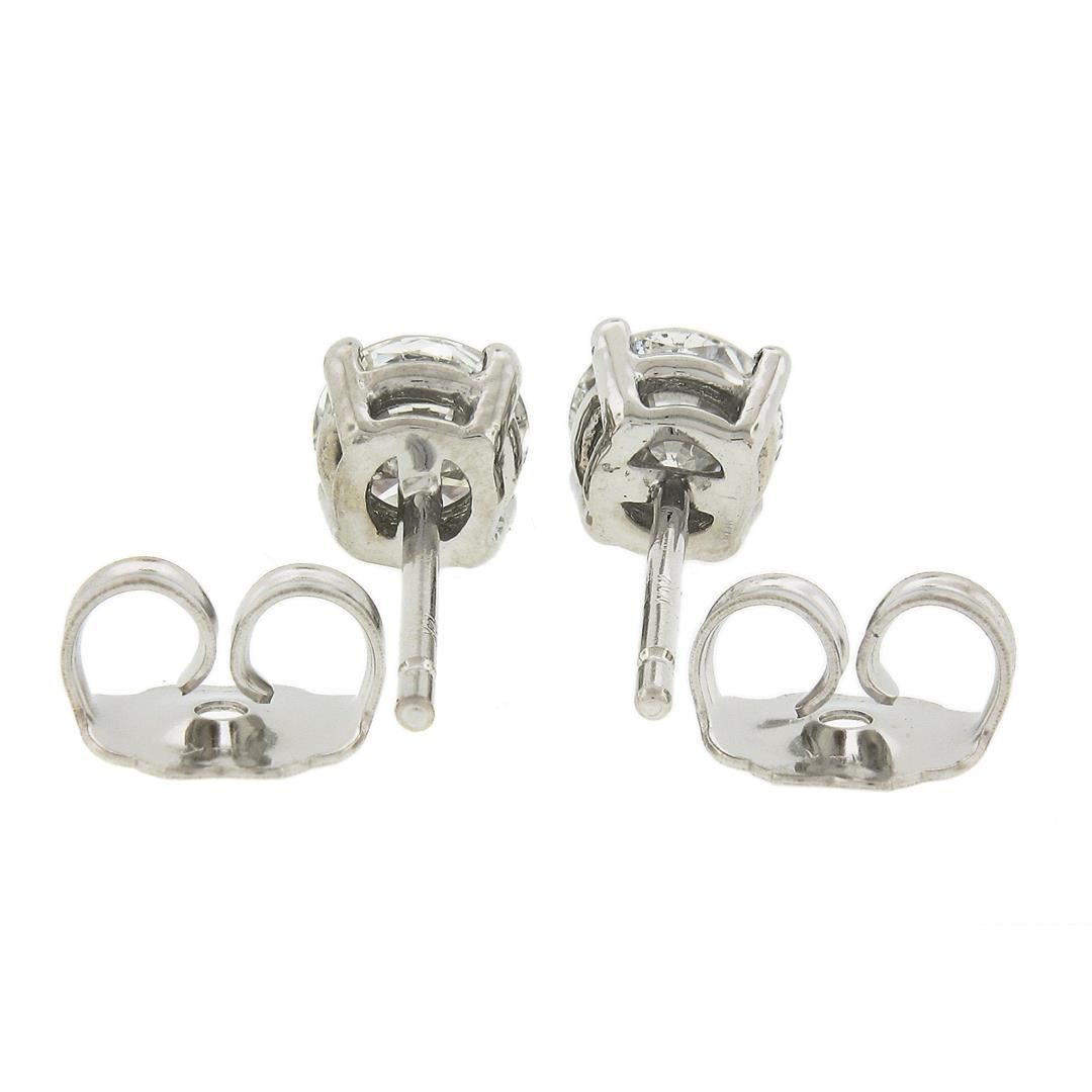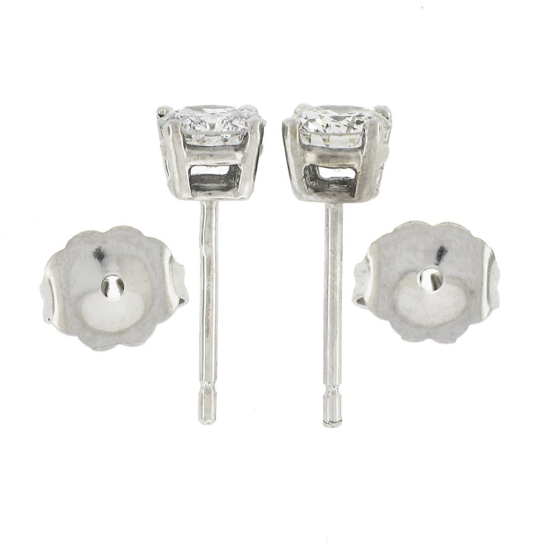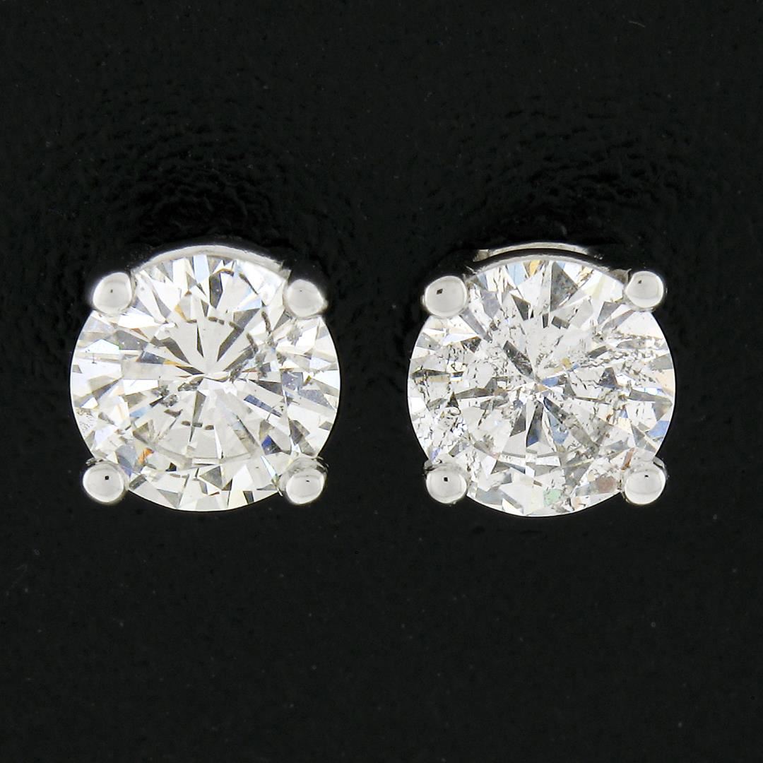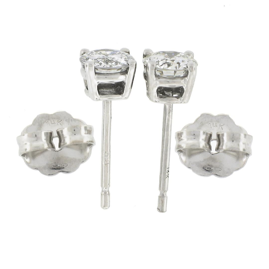 A new solid 14k white gold stud earrings, with 2 round cut natural diamonds (H-I - I1-I2 ; 0.60ctw). The earrings measure approximately 5.40mm in diamater and weigh a total of 0.90 grams.