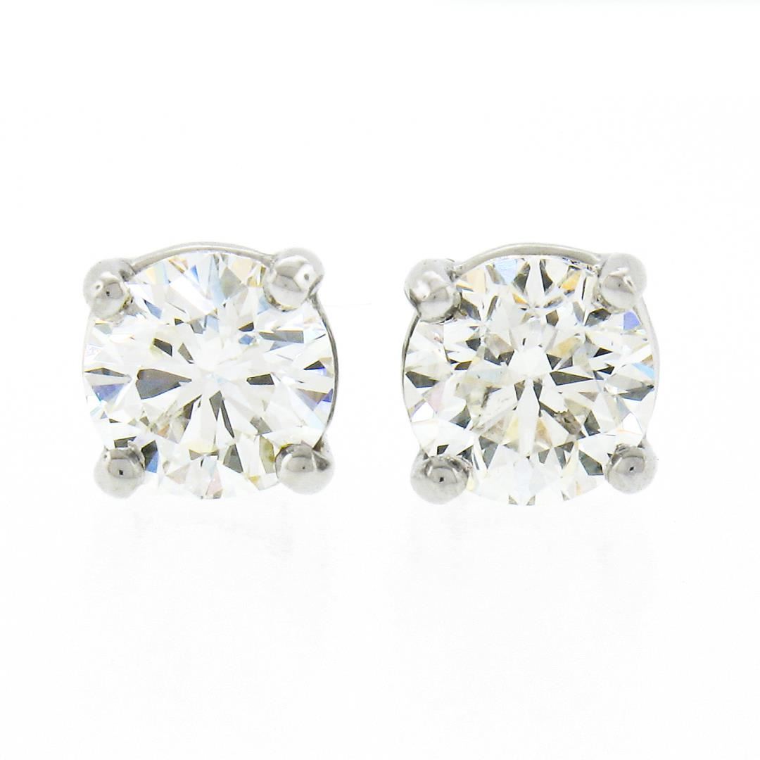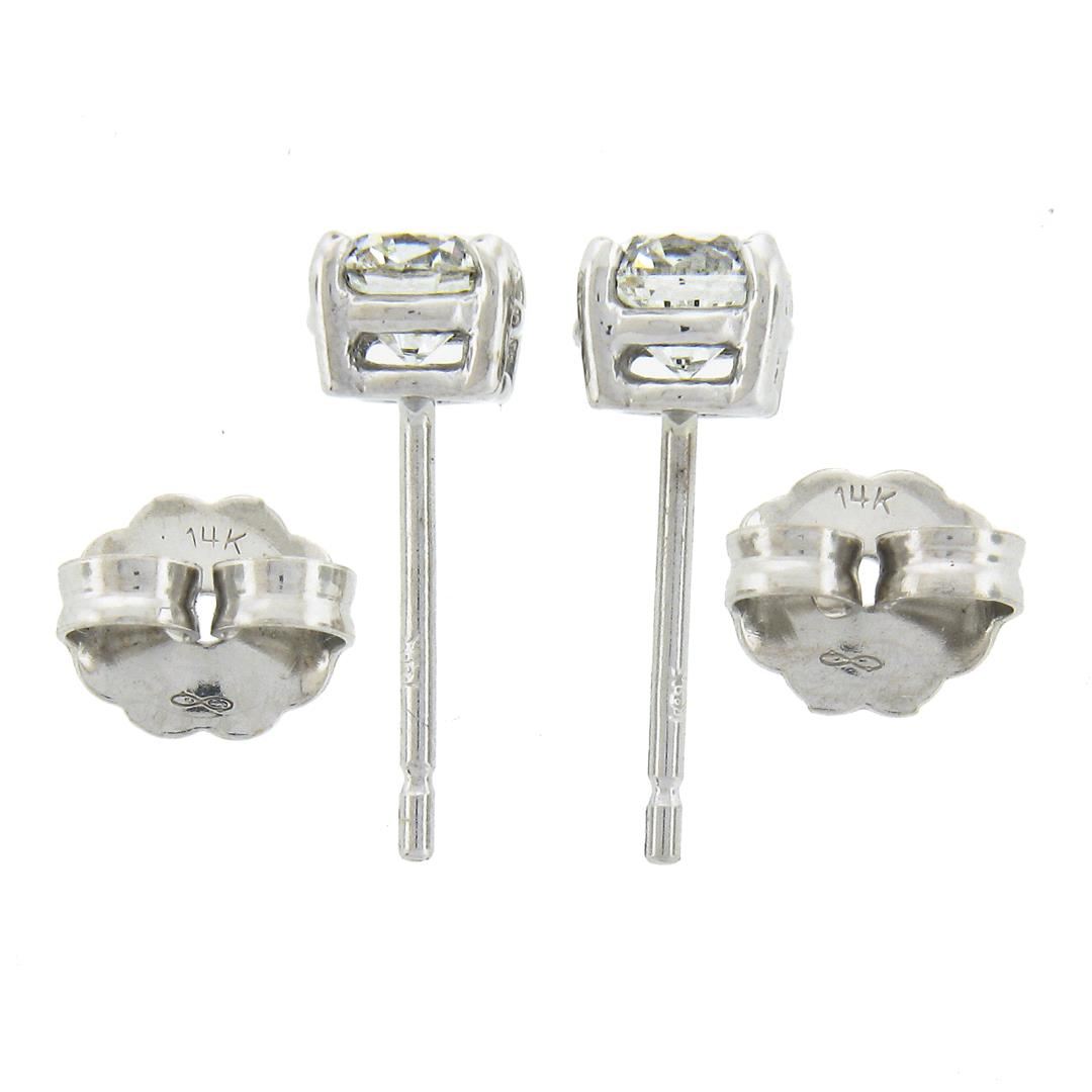 A new solid 14k white gold stud earrings, wirh 2 round brilliant cut natural diamonds (G/H - SI1/SI2 ; 0.75ctw). The earrings measure approximately 5.7mm in diameter and weigh a total of 1.05 grams.