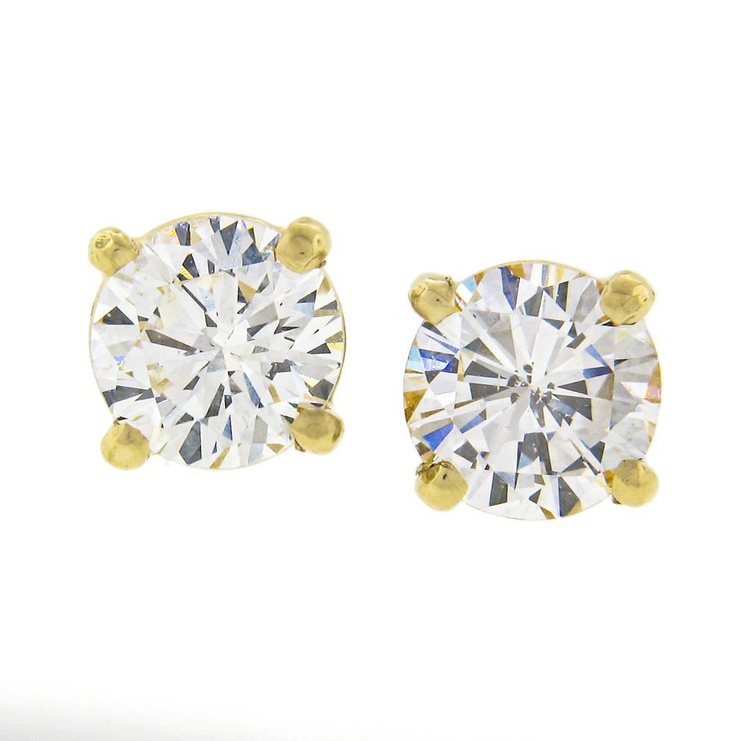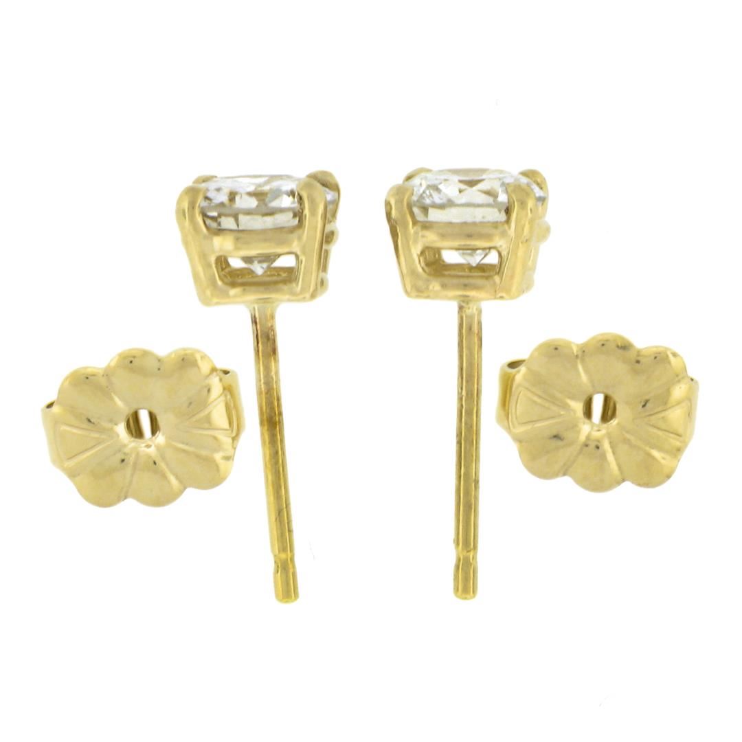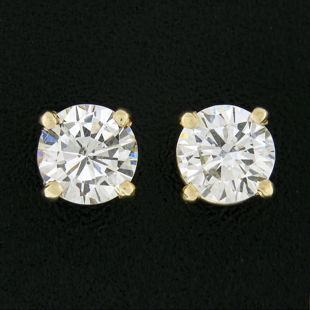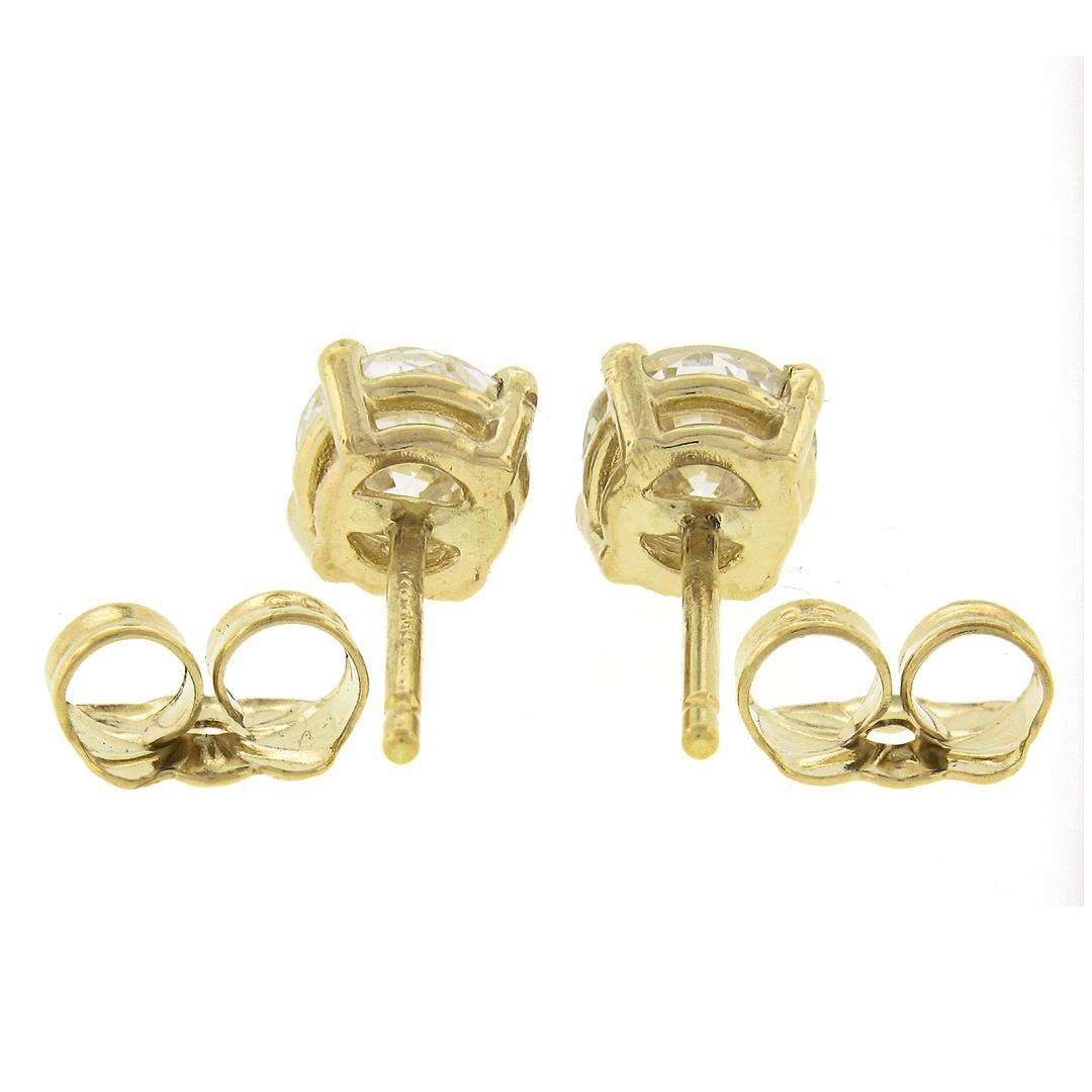 A new solid 14k yellow gold stud earrings, with 2 round cut natural diamonds (H/I - SI1/SI2; 0.82ctw). The earrings measure approximately 6mm in diameter and weigh a total of 1.15 grams.