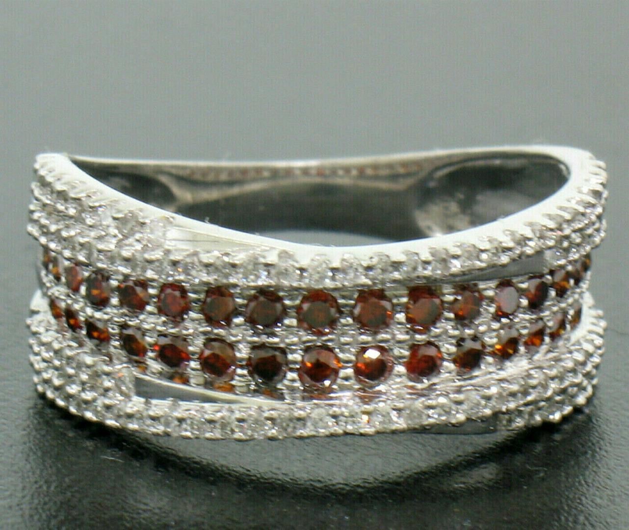 One NEW Ladies' 14k Gold 1.00ctw Round White & Brown Diamond Wide Crossover Band Ring. Item Details: Material: 14k Solid White Gold, Weight: 2.90 Grams, Stone(s): (98) Natural Genuine Diamonds - Round Brilliant Cut - Prong Set - G/H Color - SI1/SI2 Clarity, (36) Natural Genuine Diamonds - Round Brilliant Cut - Pave Set - Fancy Brown Color - SI1/SI2 Clarity, Total Carat Weight: 1.00 (approx.), Width: 7.90mm, Size: 7.0, Condition: New w/o Tags