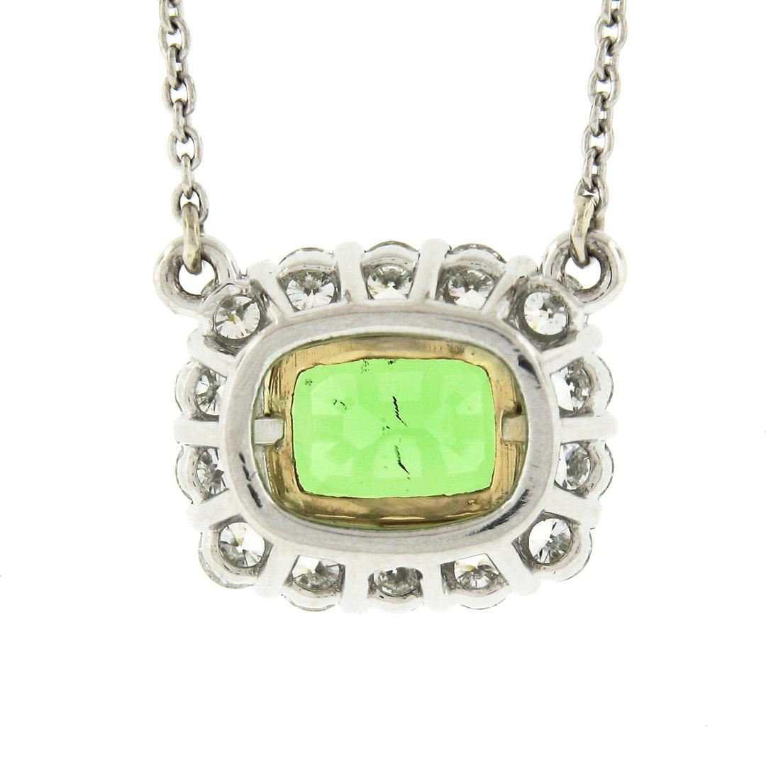 NEW Plat. 18k Gold GIA Cushion Tsavorite Solitaire Diamond Halo Pendant Necklace