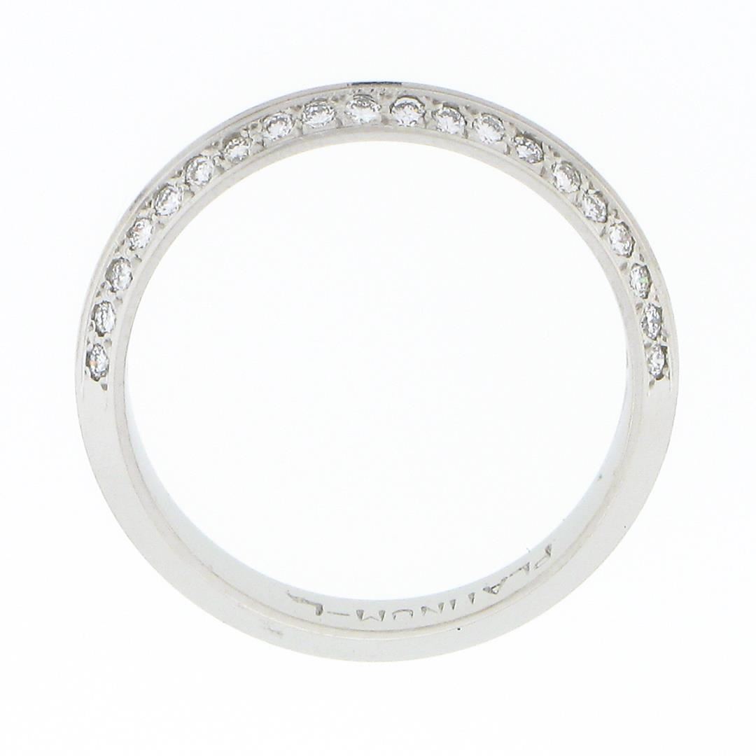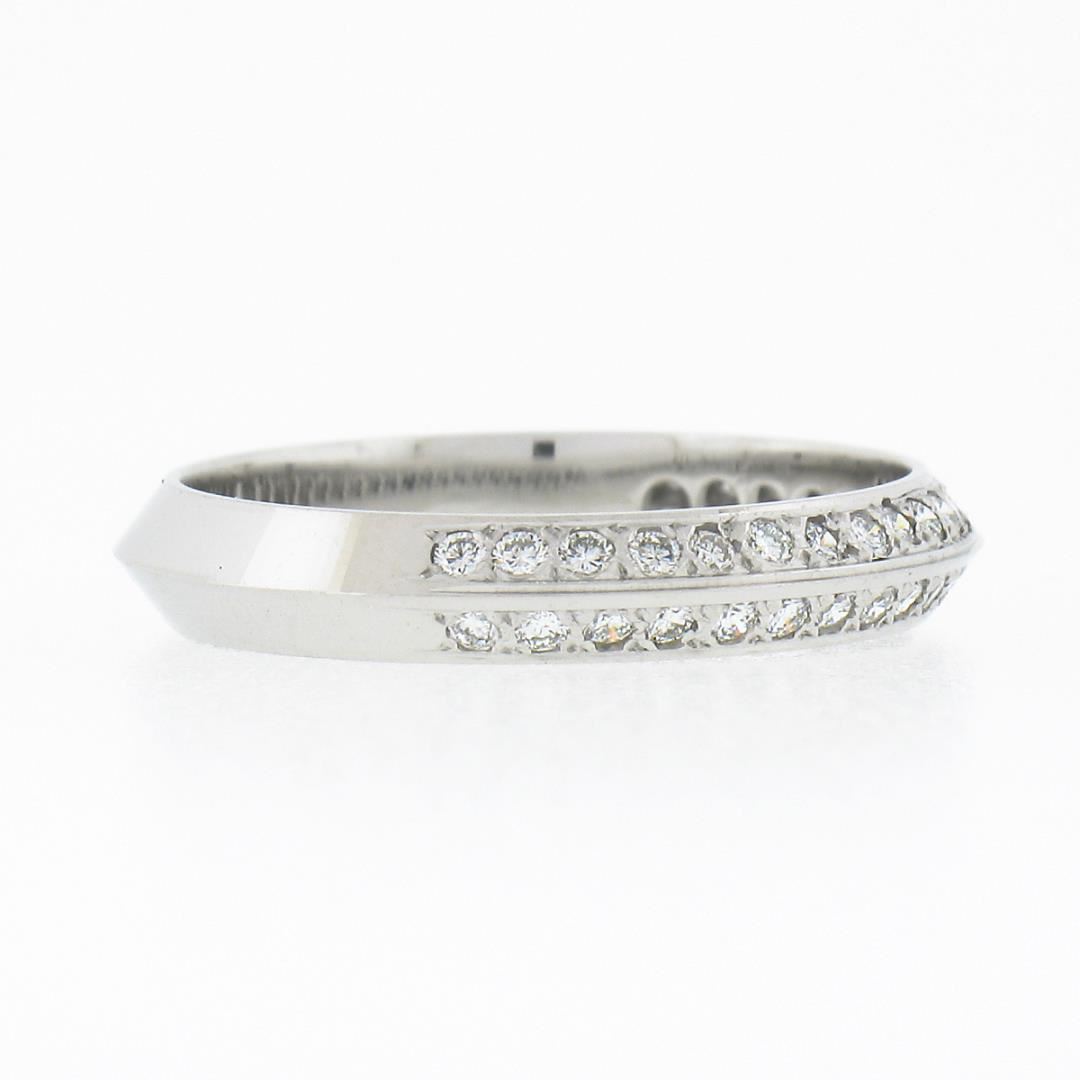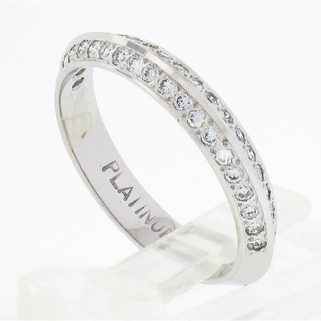 A new solid platinum band ring, with 40 round cut natural diamonds (G/H - VS1/VS2 ; 0.30ctw). The ring is size 6.5, weighs a total of 3.3 grams, and measures 3.4mm wide.