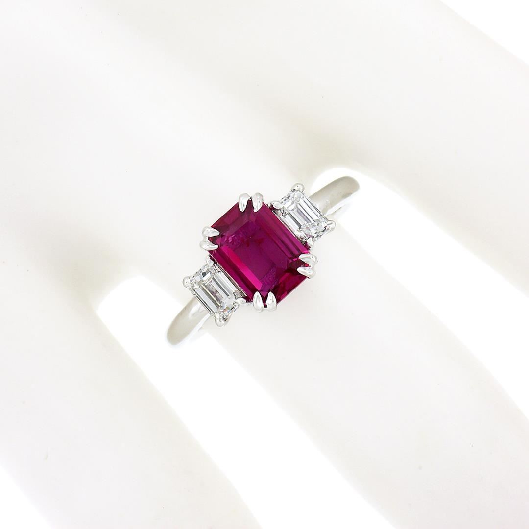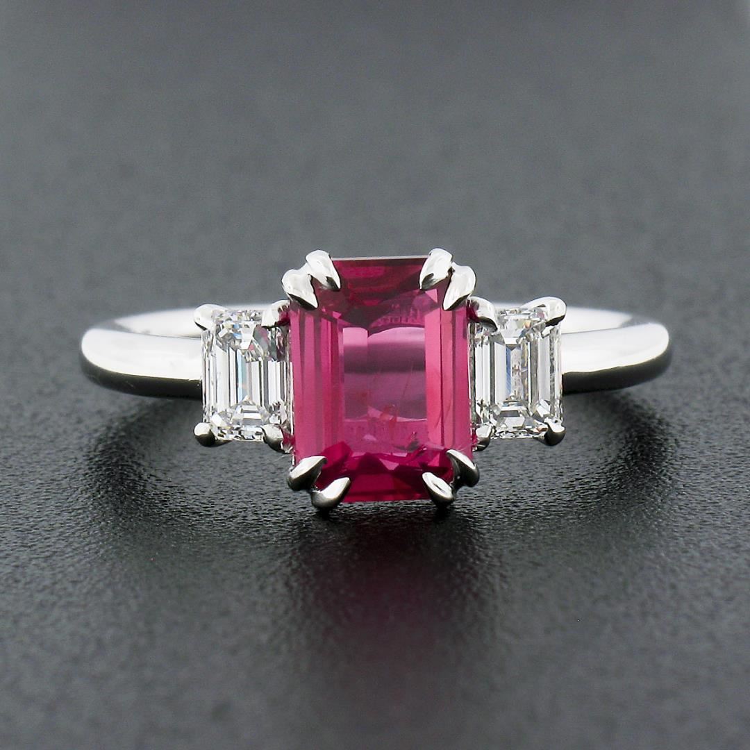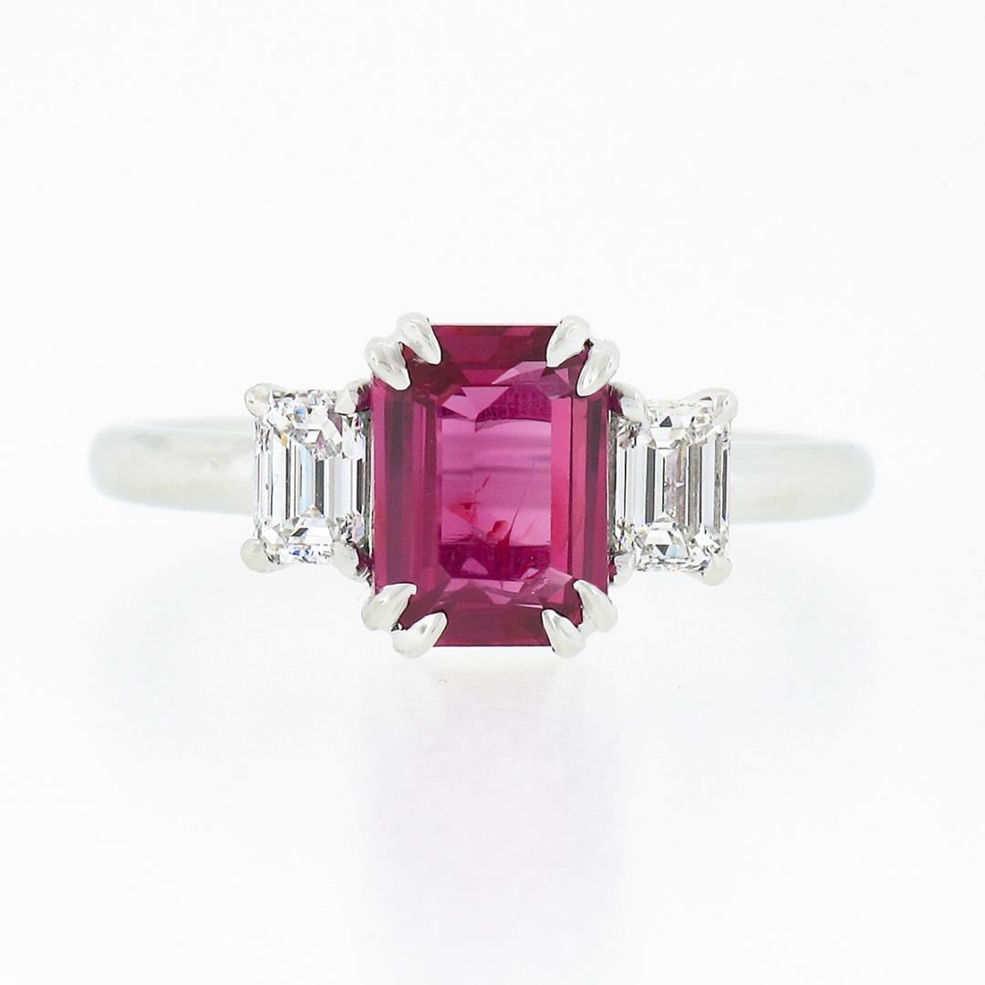 NEW Platinum 2.01ctw GIA NO HEAT Pink Sapphire & Diamond 3 Stone Engagement Ring