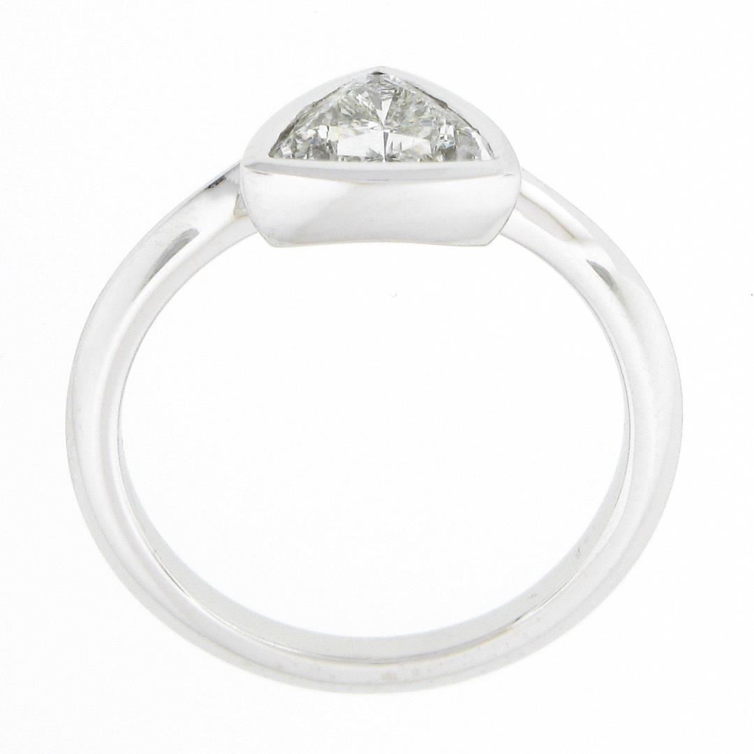 A new solid platinum solitaire ring, with 1 GIA graded trillion cut natural diamond (G - SI2 ; 1.01ct). The ring is size 6.0, weighs a total of 5.0 grams, and measures 8.90mm wide. Comes with all original relevant certifications.