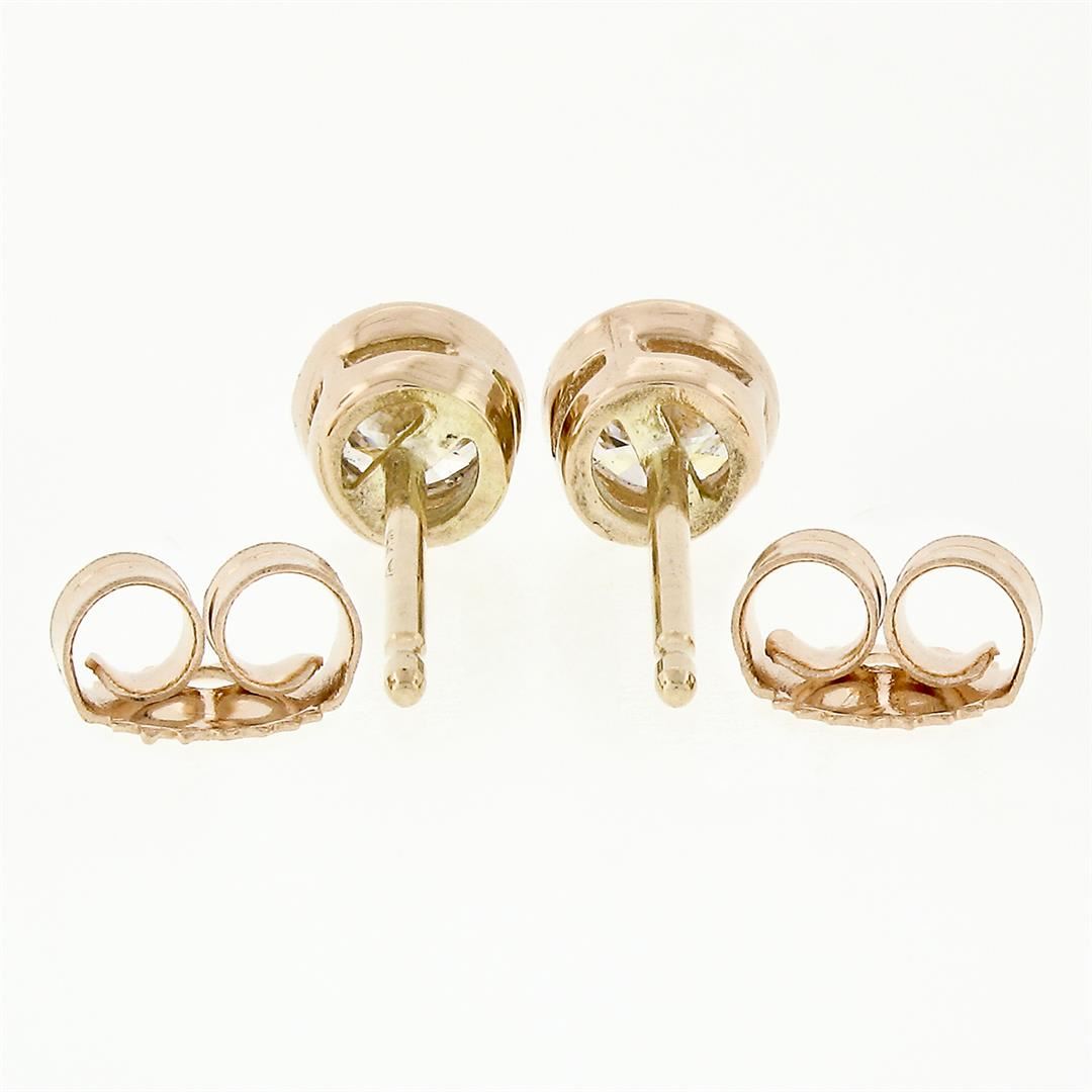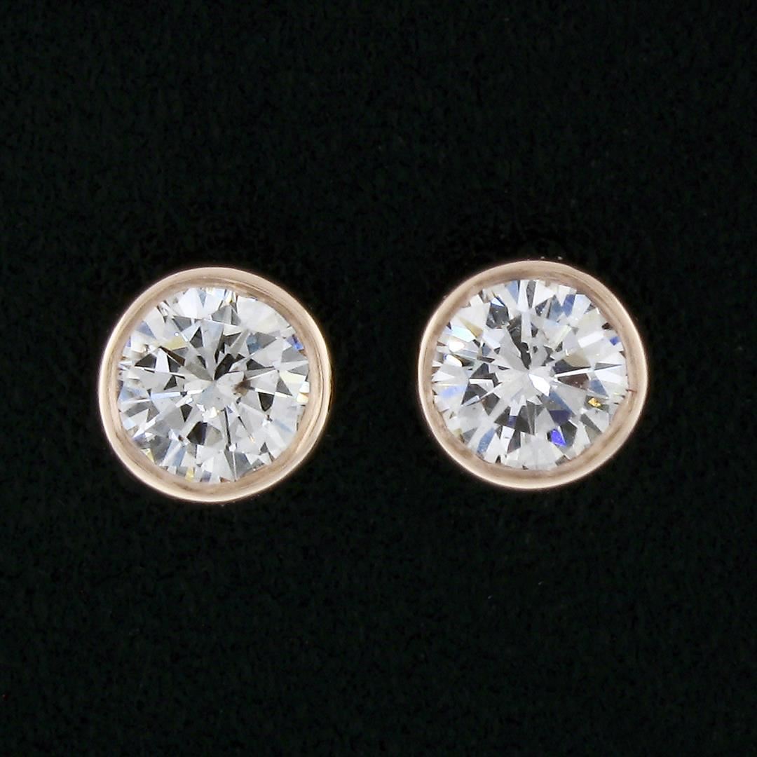 A new solid 14k rose gold stud earrings, with 2 round brilliant cut natural diamonds (F/G- VS1/VS2; 0.42ctw). The earrings measure approximately 4.45mm in diameter and weigh a total of 0.71 grams.