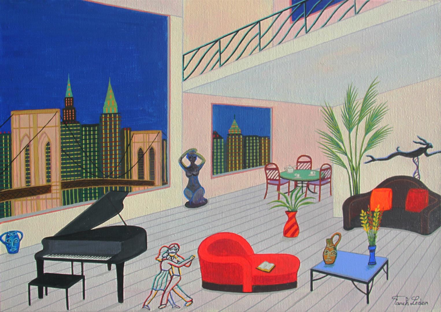 Nicely detailed 15x18.25" original acrylic on stretched canvas, signed by artist. This artwork by Fanch Ledan comes with COA,