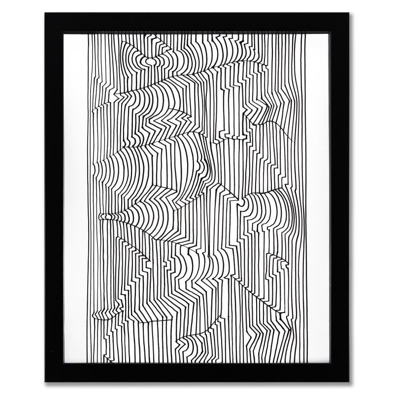 "Naissances - I, Naissances - III, et Ebi-Noor de la série Ondulatoires (Triptych)" is a set of heliogravure prints on paper, published in 1973, by Victor Vasarely (1908-1997). These pieces come custom framed, with a letter of authenticity and with a 1976 Vasarely paperback. Measures approx. 12.5" x 15" (frame), 10" x 13" (image).
