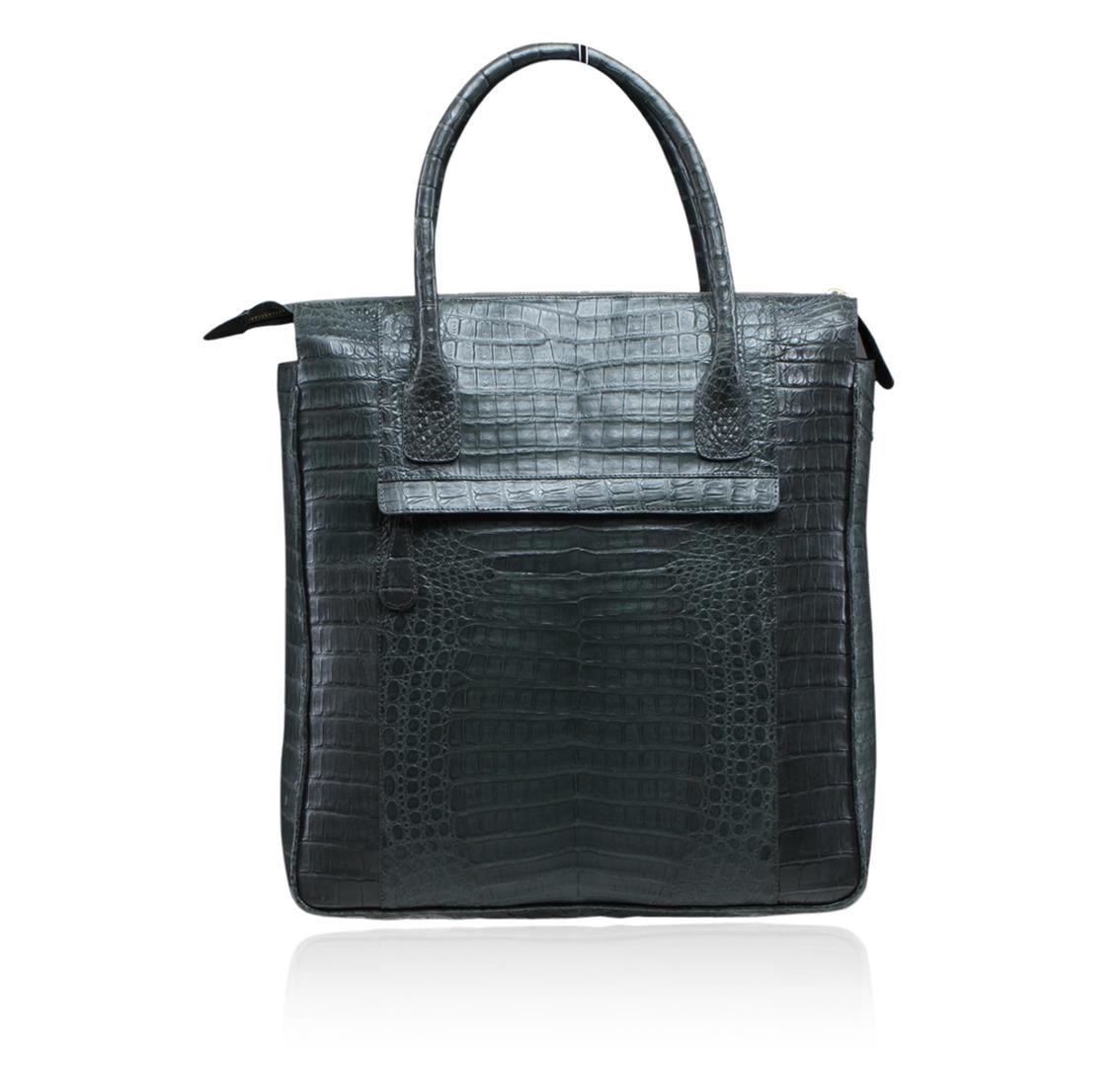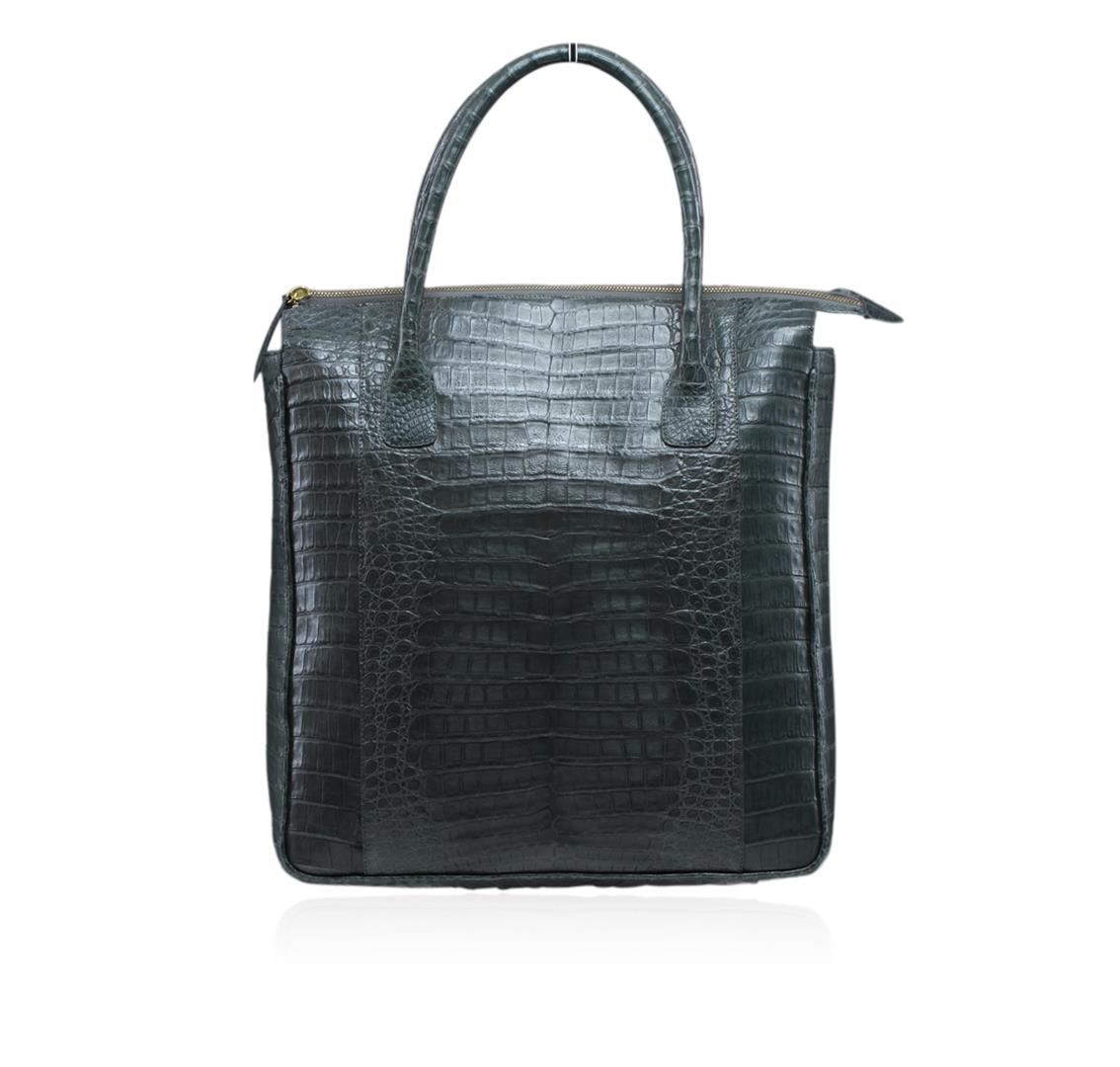 One authentic Nancy Gonzales Large Grey Crocodile Tote. This roomy tote epitomizes everyday sophistication and makes a perfect everyday bag, large enough to hold all your essentials in style. The classic tote style features a zip closure and double top handles. The flexible sides allow for easy expansion. Made from the highest quality crocodile skin. Estimated retail value $3,560.00.