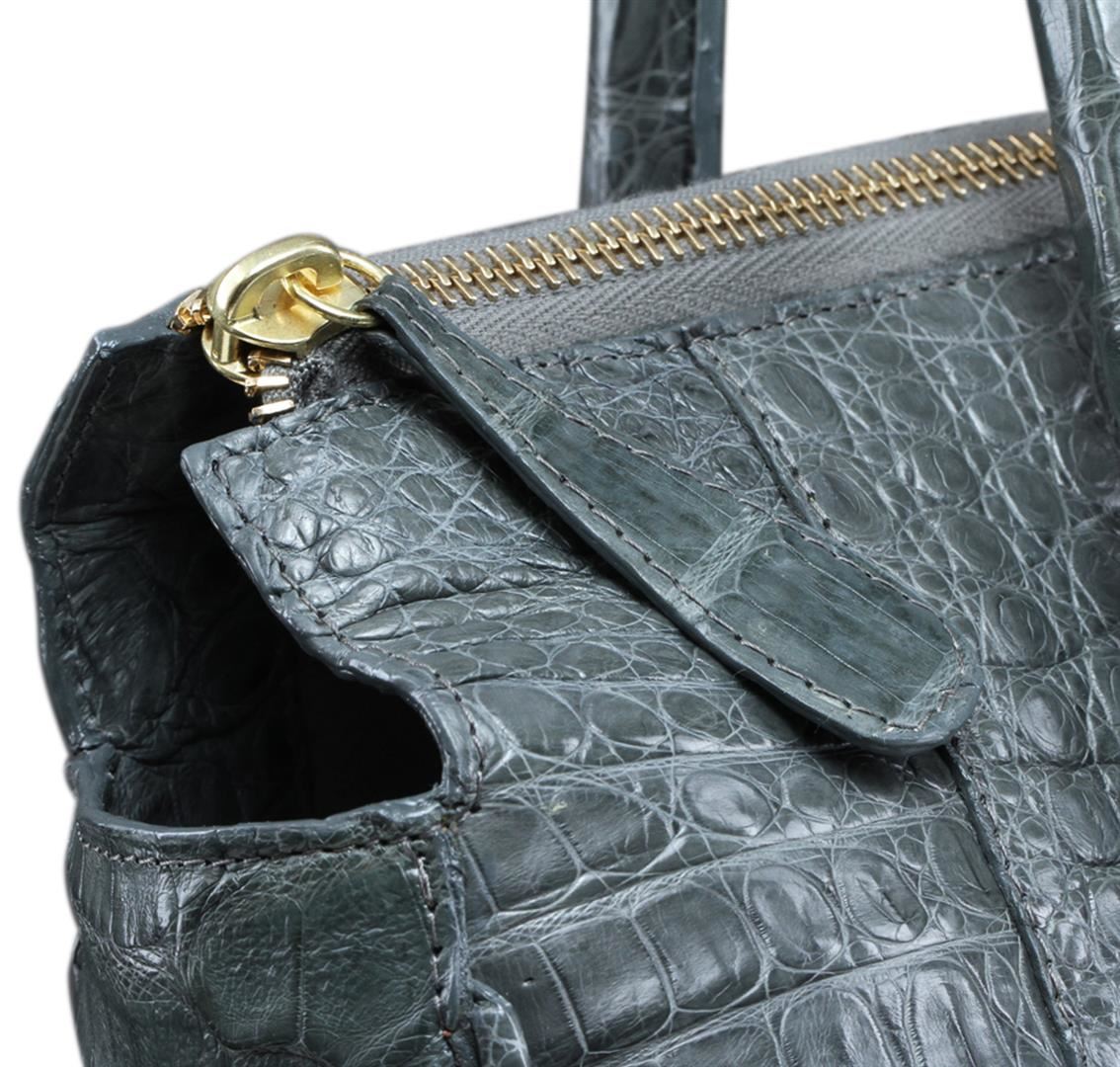 One authentic Nancy Gonzales Large Grey Crocodile Tote. This roomy tote epitomizes everyday sophistication and makes a perfect everyday bag, large enough to hold all your essentials in style. The classic tote style features a zip closure and double top handles. The flexible sides allow for easy expansion. Made from the highest quality crocodile skin. Estimated retail value $3,560.00.