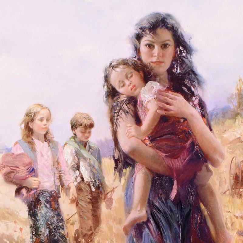 "Nauvoo Legacy" is a hand embellished limited edition giclee on canvas by Pino (1939-2010), numbered and hand signed. Includes Certificate of Authenticity. Measures approx. 24" x 30" (image). This piece is not stretched.