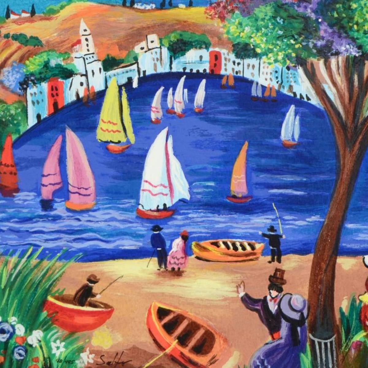 "Near the Lake" is a limited edition serigraph on paper, numbered hand signed by Shlomo Alter. Includes Certificate of Authenticity. Measures approx. 14" x 15" (with border), 12.5" x 14" (image).