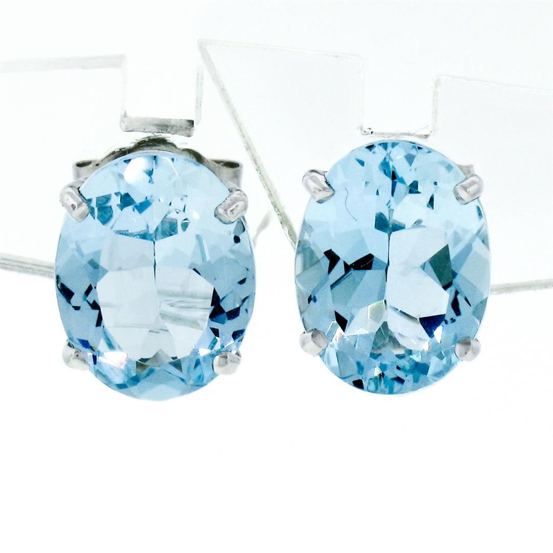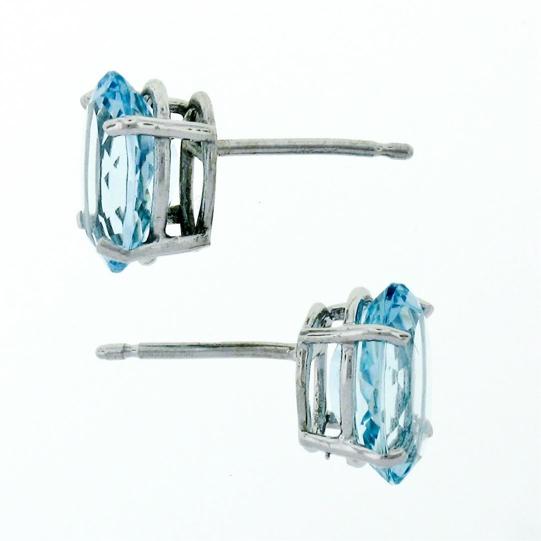 A new solid 14k white gold stud earrings, with 2 oval cut natural aquamarine (6.95x9.0mm - 2.84ctw ). The earrings measure approximately 9.0x6.95mm and weigh a total of 2.84 grams.