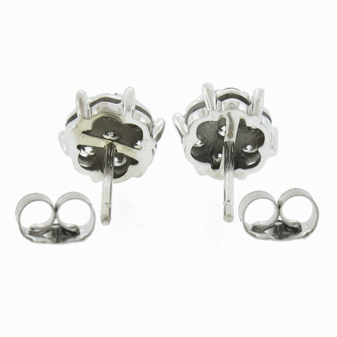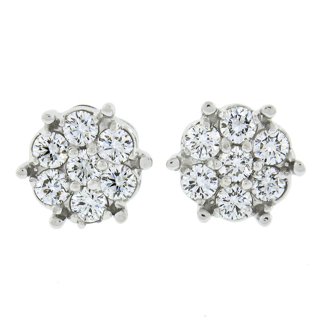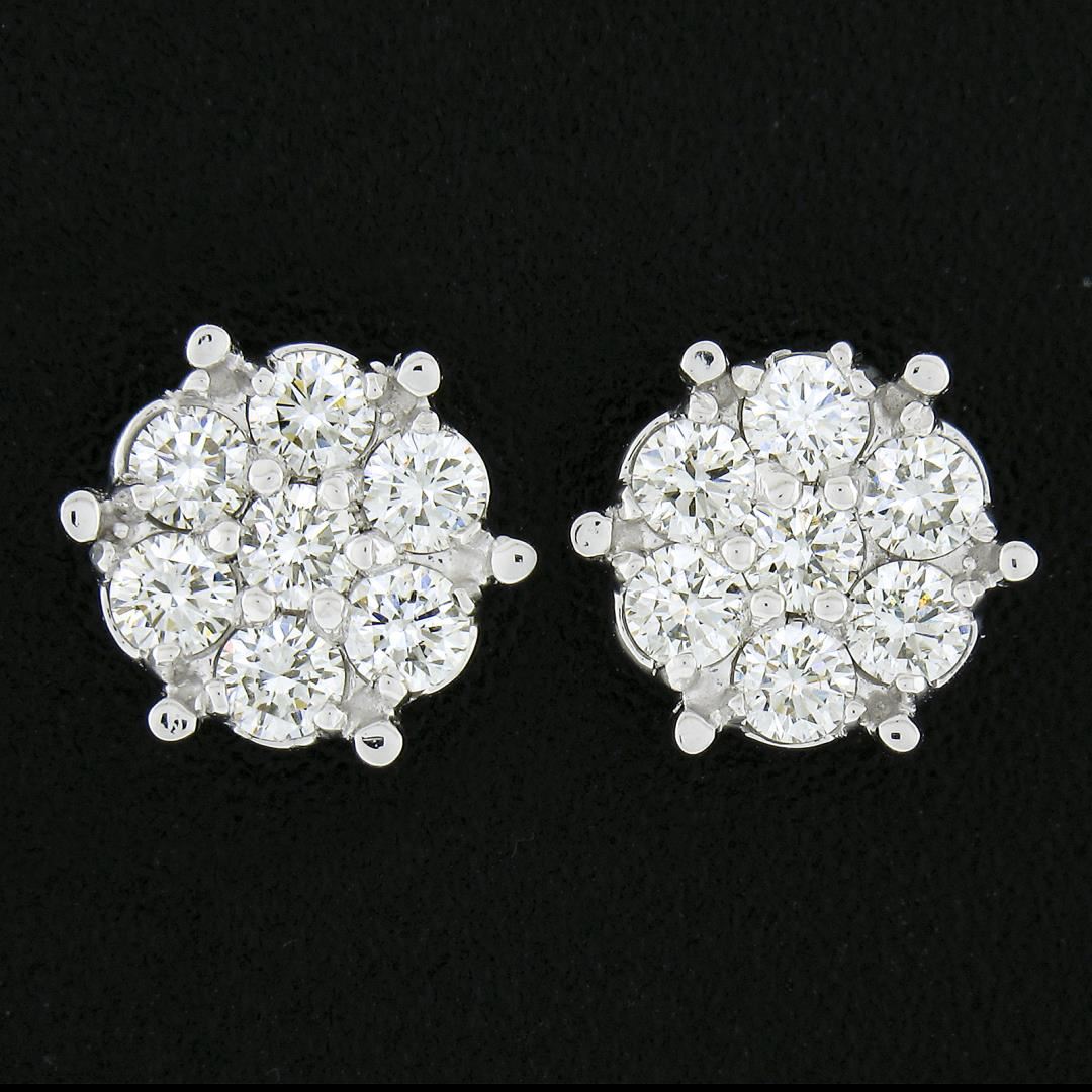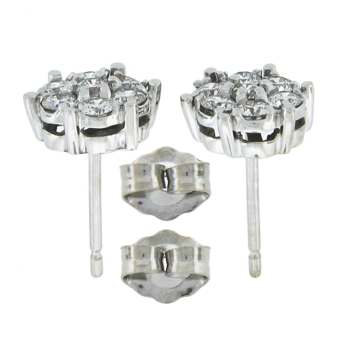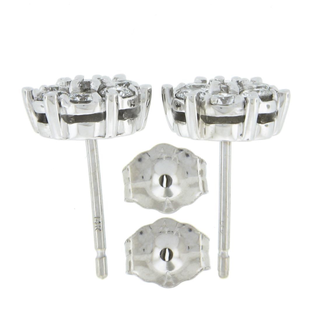 A new solid 14k white gold stud pair of earrings, with 14 round cut natural diamonds (F/G - VS1/VS2 ; 0.55ctw). The earrings measure approximately 8.2mm in diameter and weigh a total of 1.60 grams.