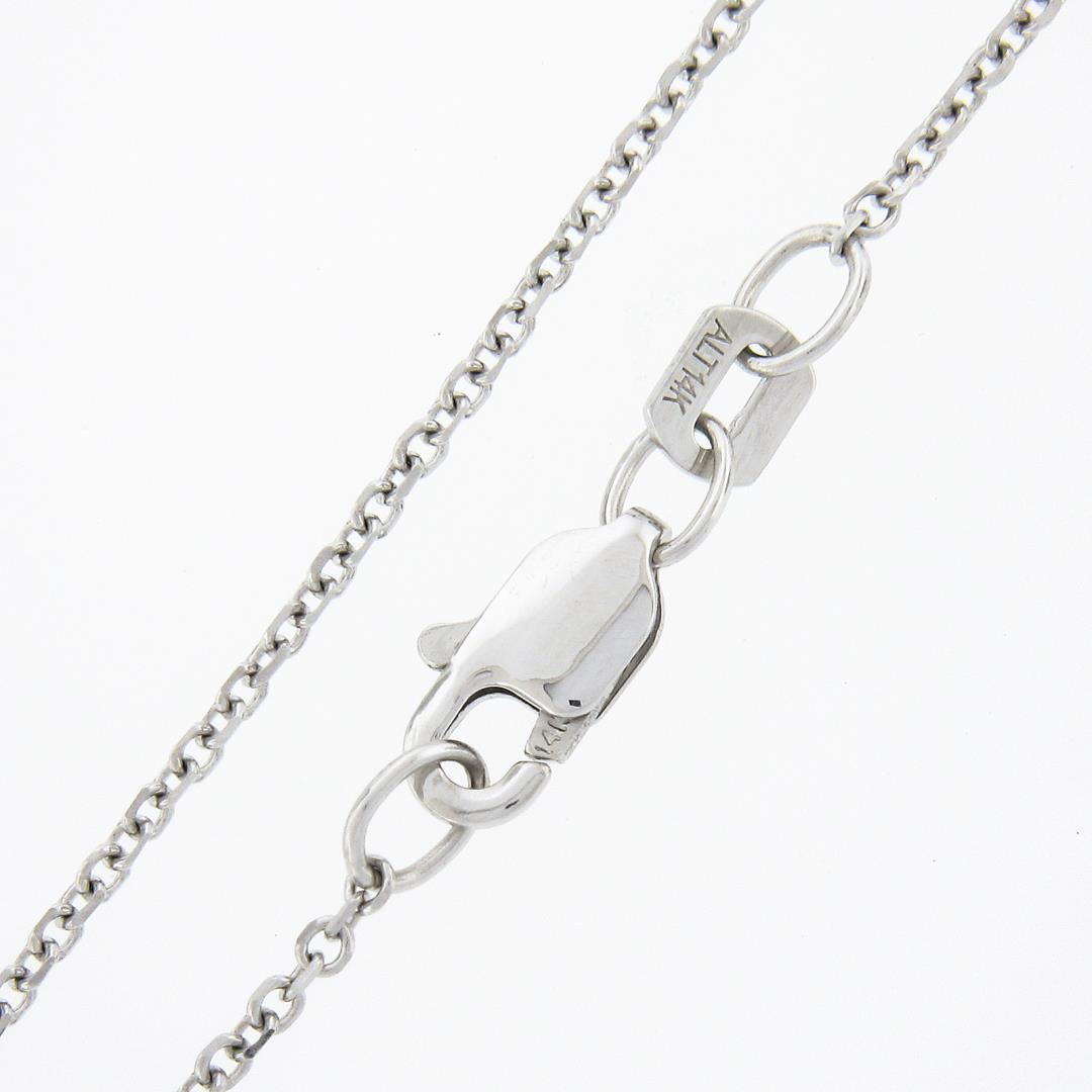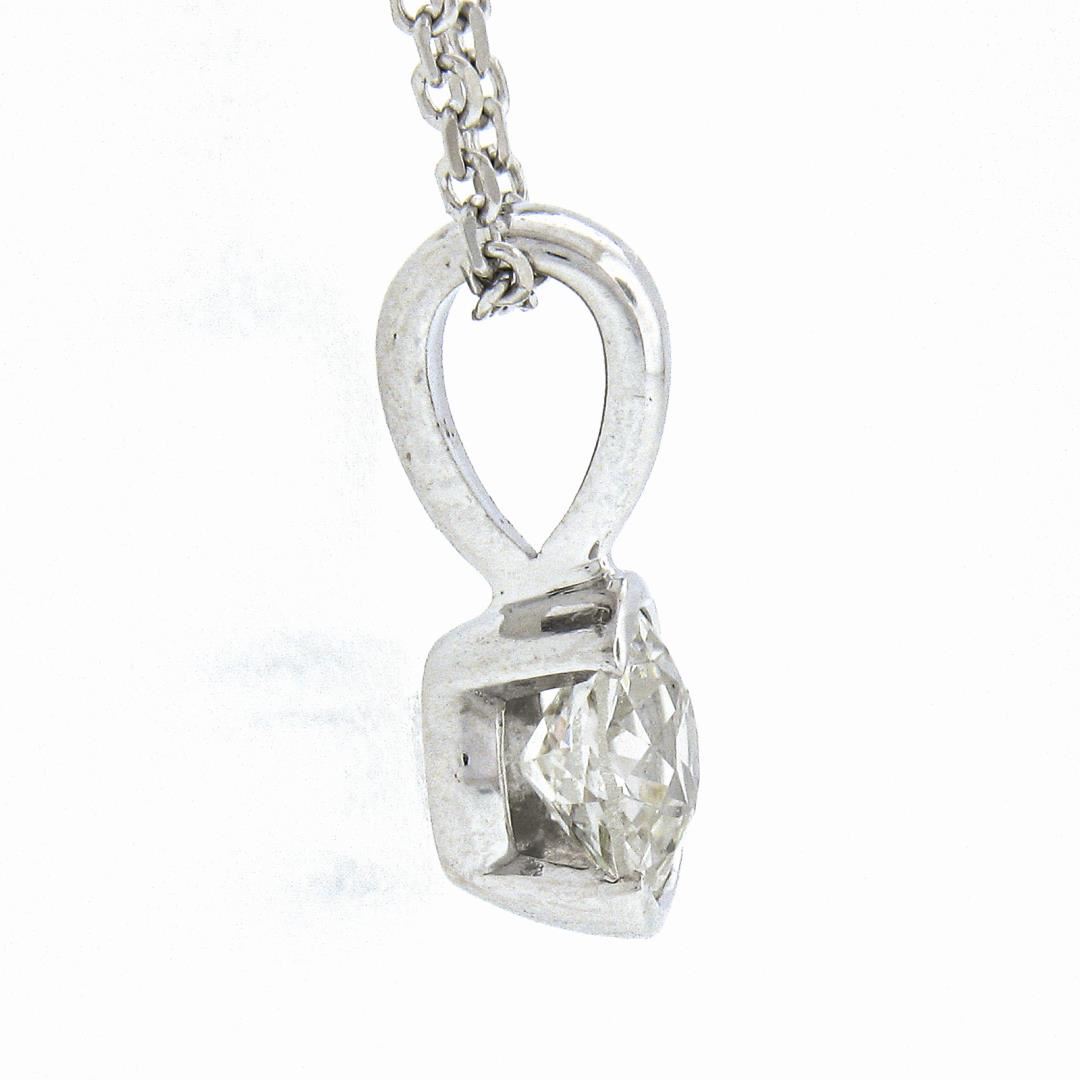 A new solid 14k white gold solitaire pendant necklace, with 1 old European cut natural diamond (H- VS2 ; 0.56ct). 18 inch cable link chain, 2.48 grams total weight, pendant measures 12.8x5.1mm.