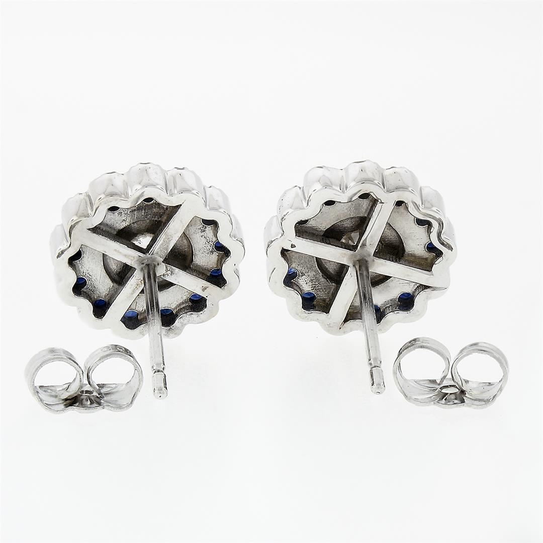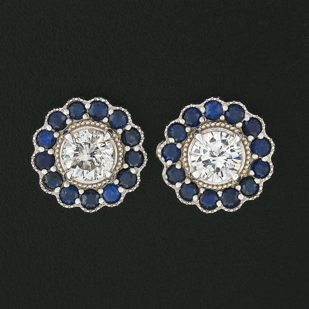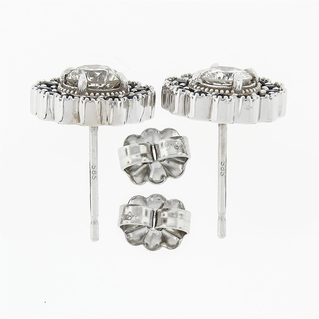 New 14k White Gold 1.51 ctw Diamond Sapphire Halo Milgrain Flower Cluster Earrin