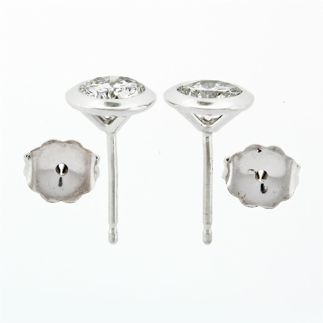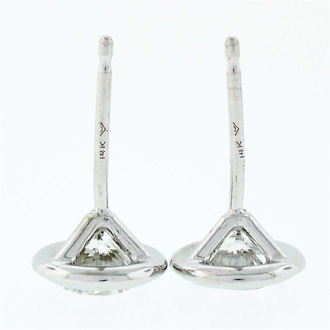 New 14k White Gold .84 ctw Martini Bezel Set Round Brilliant Diamond Stud Earrin