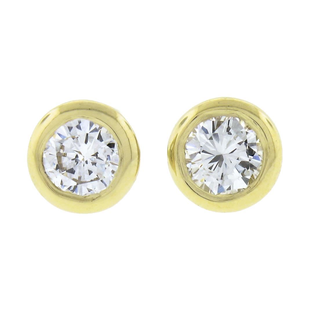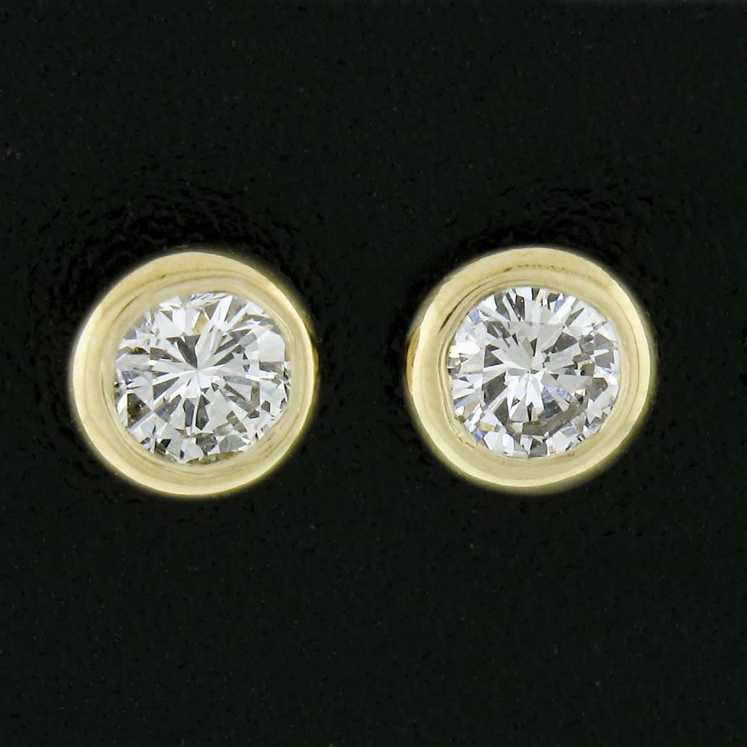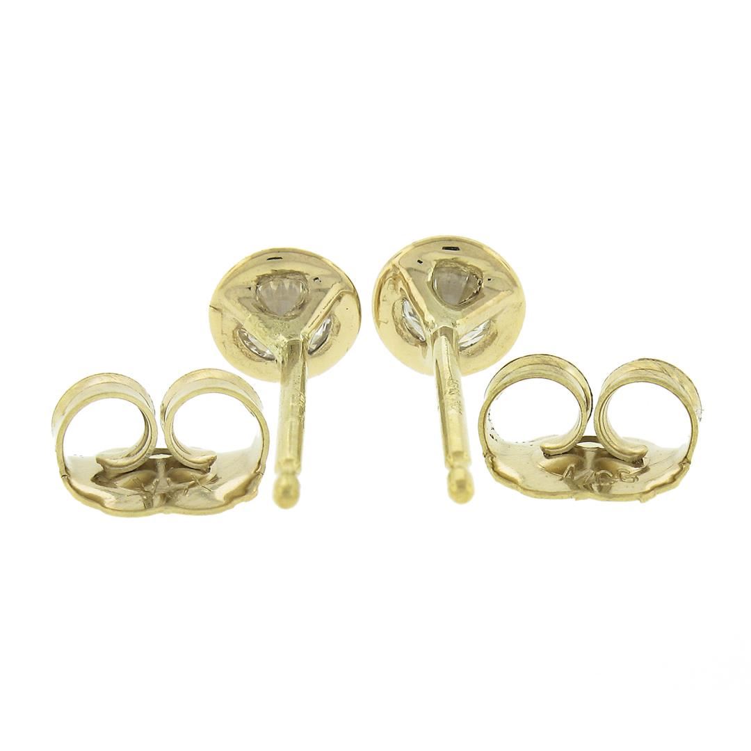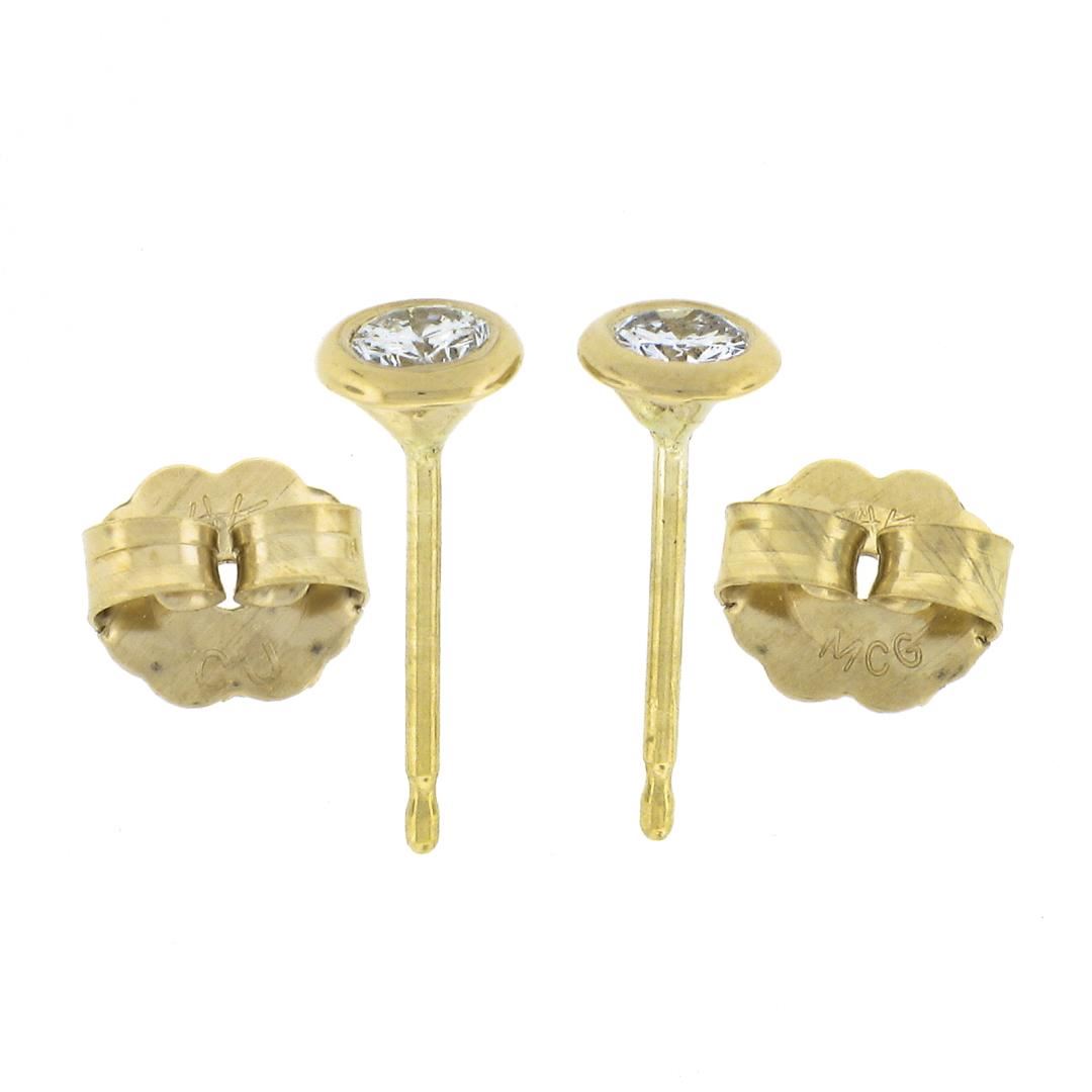 A new solid 14k yellow gold stud earrings, with 2 round cut natural diamonds (H/I - VS2/SI1 ; 0.18ctw). The earrings measure approximately 4.4mm and weigh a total of 0.60 grams.