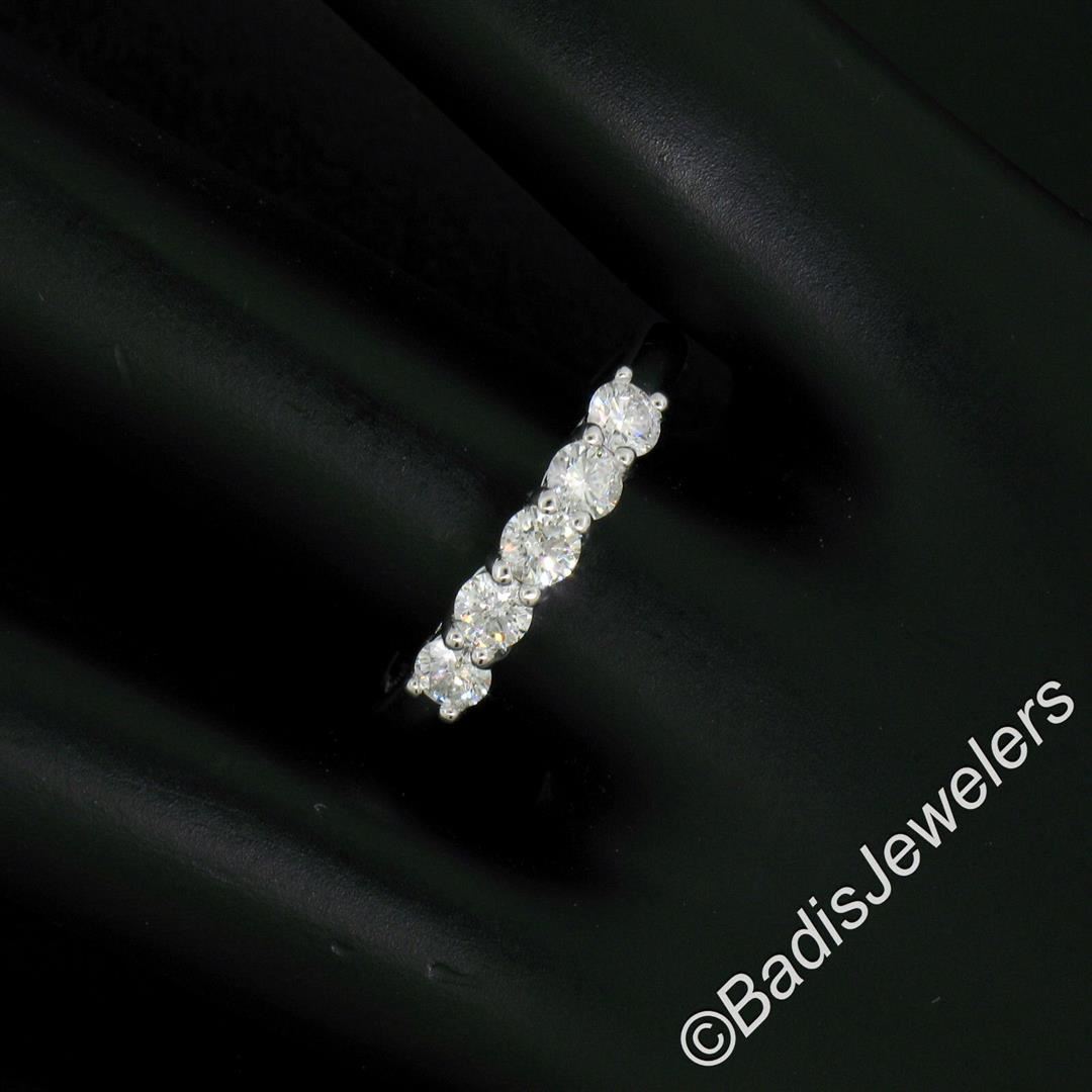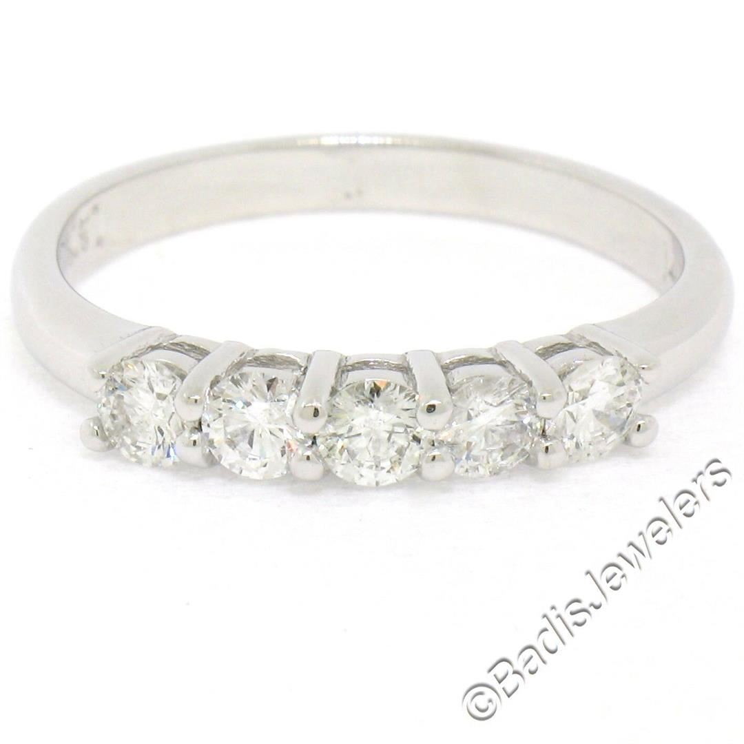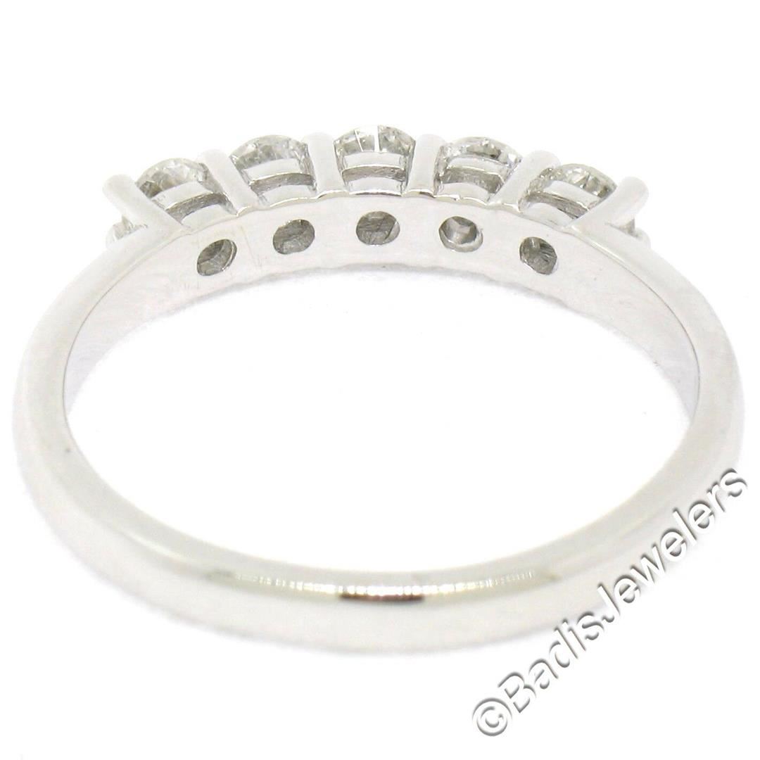 A brand new 14kt white gold 0.65ctw 5 round diamond (F/G - VS2/SI1) wedding band ring. The ring is size 7.5, weighs a total of 2.84 grams, and measures 3.25mm wide.