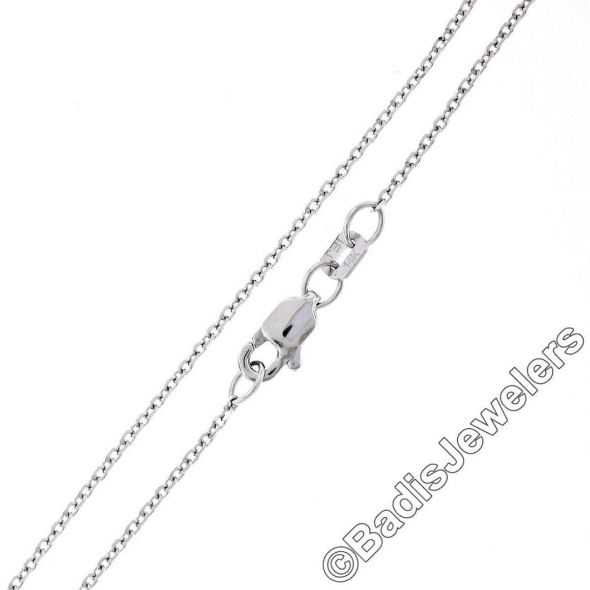 A new 14kt white gold cross pendant necklace featuring 16 round brilliant diamonds of various light fancy colors (VS1/VS2; 1.52ctw). 18 inch cable link chain, 4.35 grams total weight, pendant measures 28.25x20.60mm.