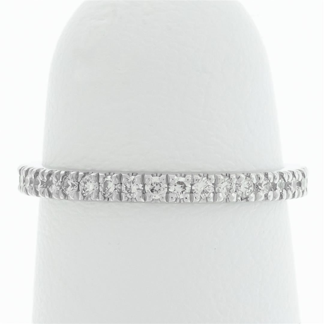 One New 18K White Gold Ladies Diamond Eternity Ring, Ring Size 4.5, Ring Width: 1.95MM, Stone Count: 38 Natural Diamonds, Diamond Weight .19 Carats, Diamond Color: G To H, Clarity: SI1, Total Ring Weight 1.49 Grams, Condition: Brand New.
