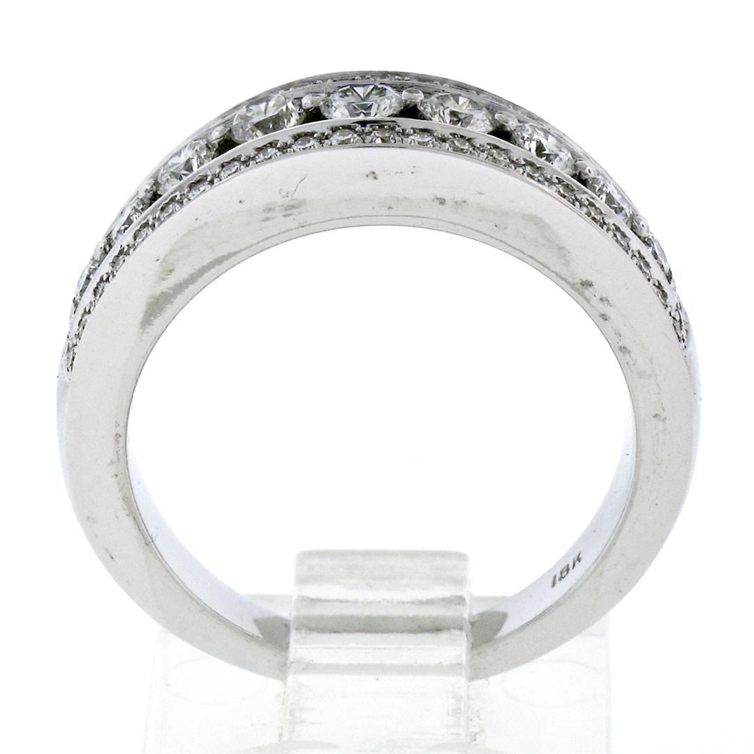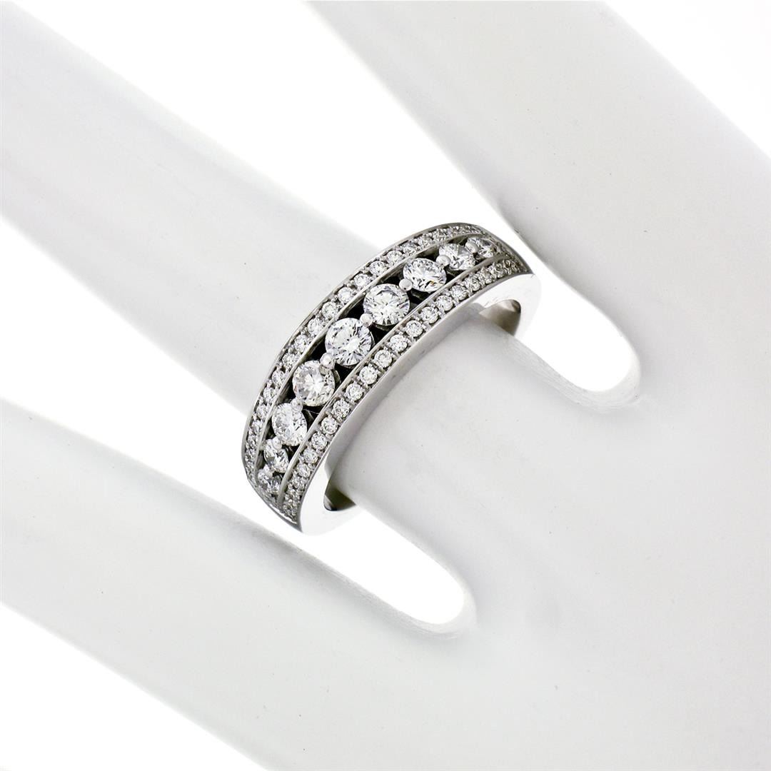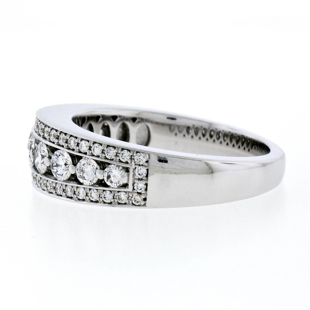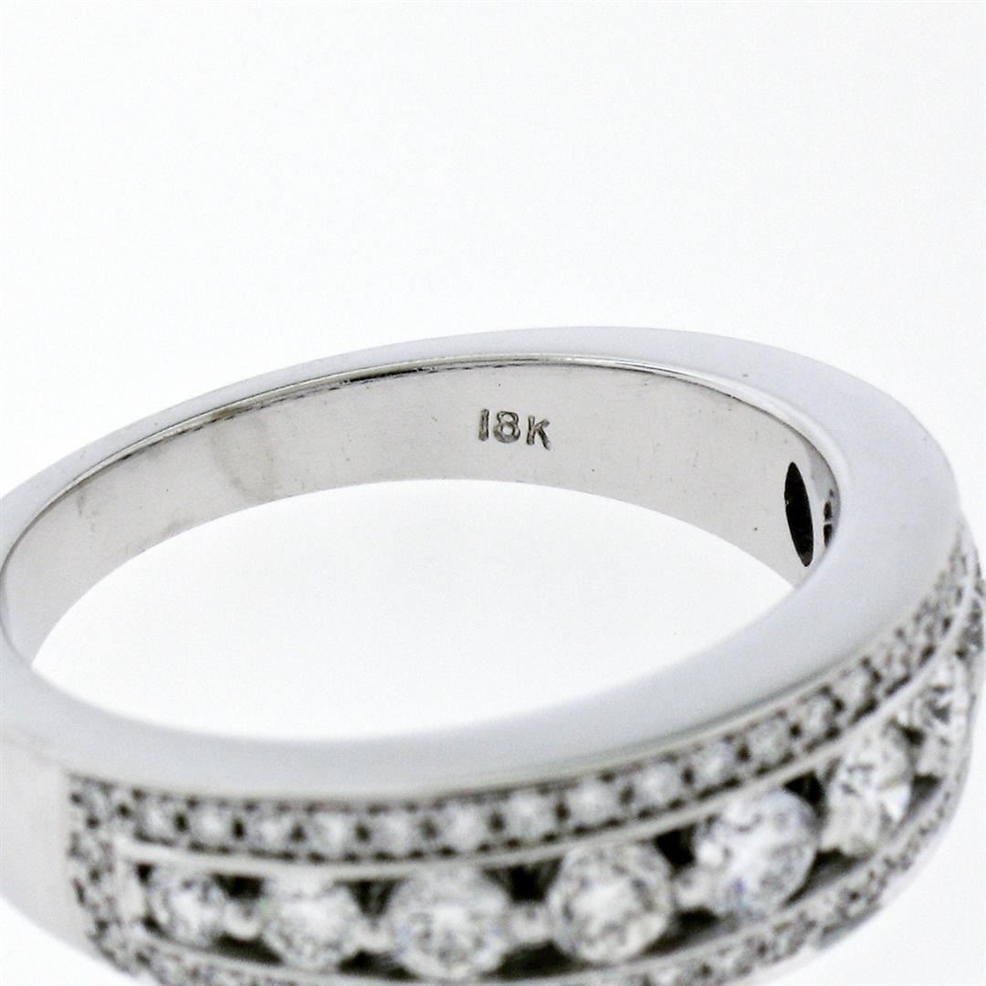 New 18k White Gold 1.0ctw Round Brilliant Pave & Shared Prong Diamond Band Ring. Please see photos and description for all available information. A new solid 18k white gold band ring, featuring 57 round brilliant cut natural diamonds (G/H- VS1; 1.00ctw). The ring is size 6.5, weighs a total of 6.74 grams, and measures 6.30mm wide.