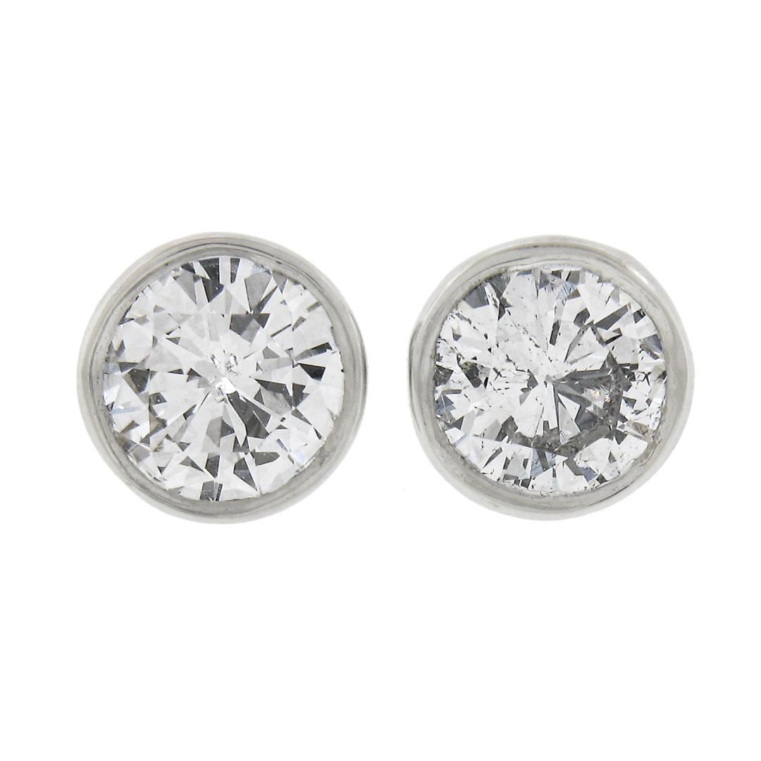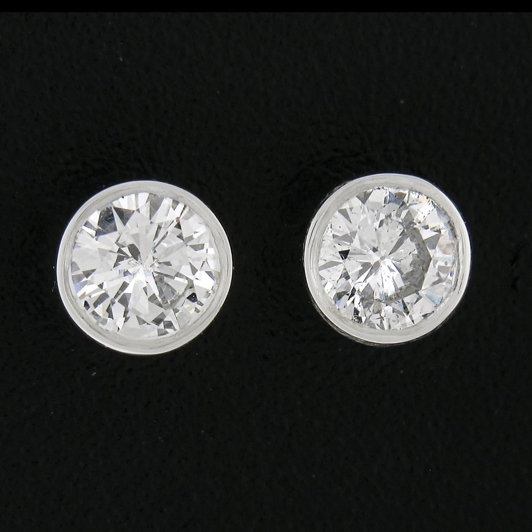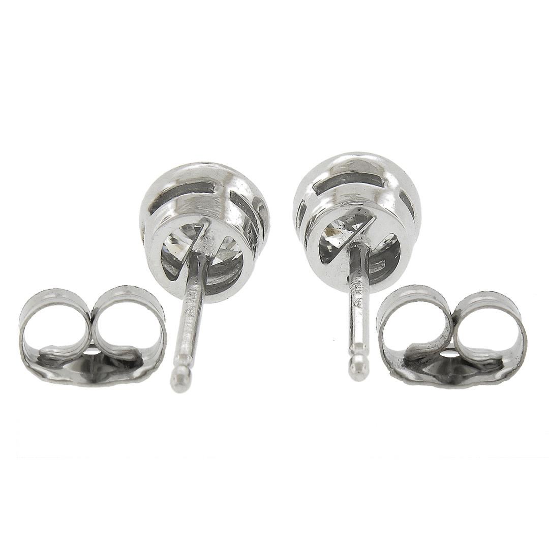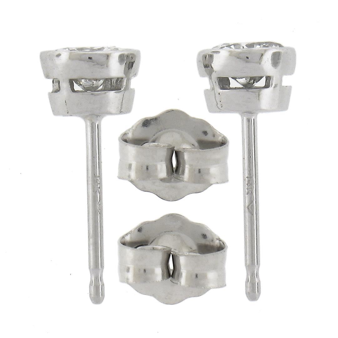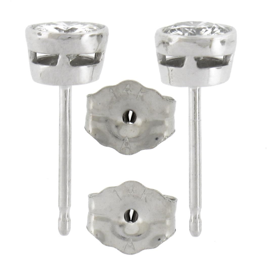 New Classic 14k White Gold 0.52ctw Bezel Round Brilliant Diamond Stud Earrings