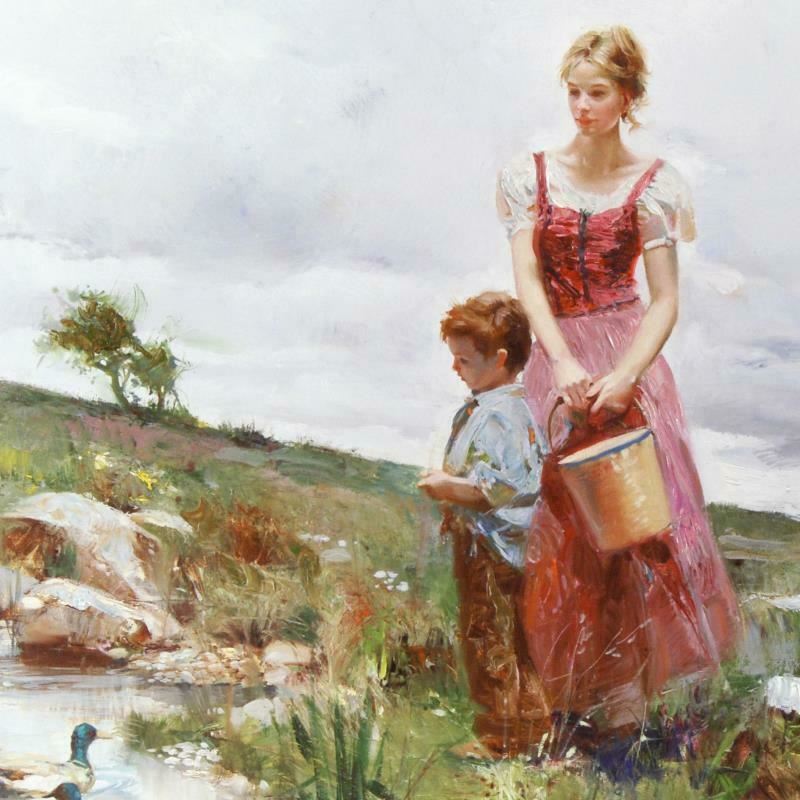 "New Friends" is an artist embellished limited edition giclee on canvas by Pino (1939-2010), Numbered and hand signed by the artist. Includes Certificate of Authenticity. Measures approx. 40" x 30" (image). This piece is not stretched.