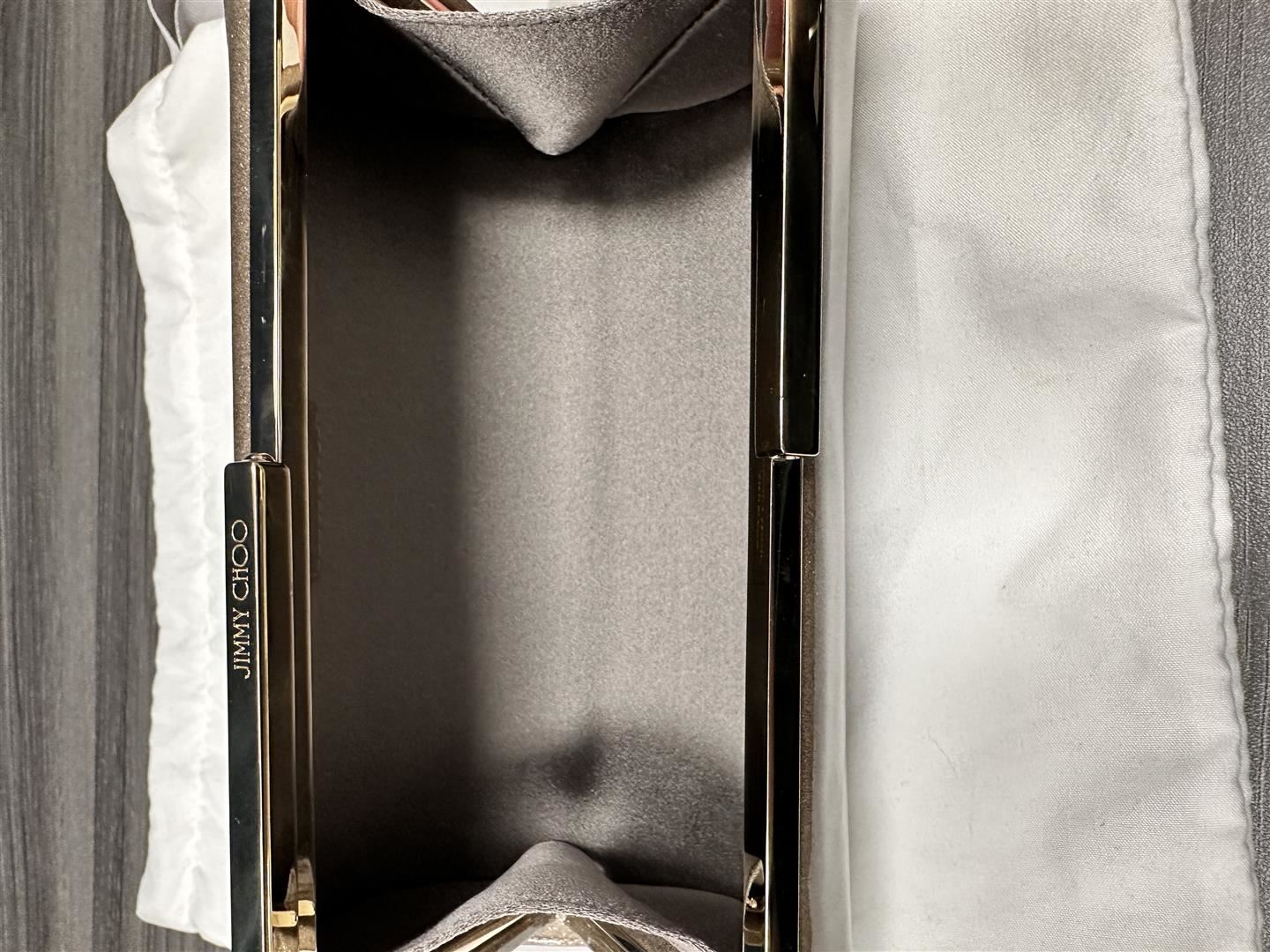 One New Jimmy Choo Glitter Patent Trinket Clutch.
