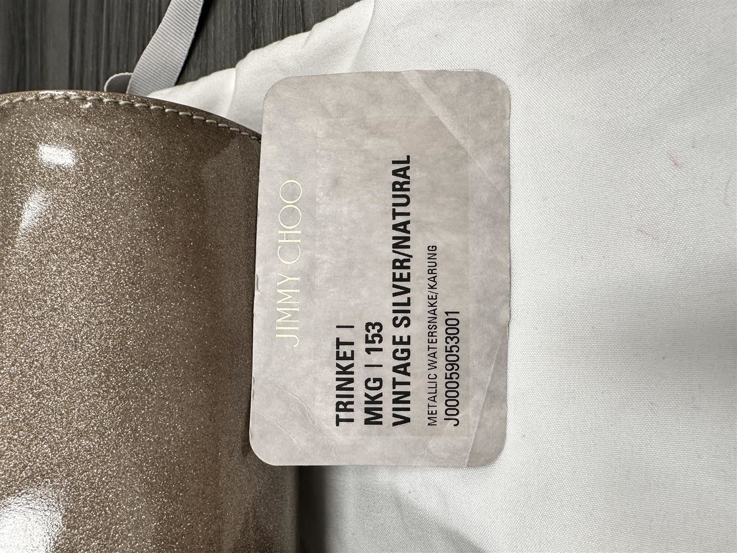 One New Jimmy Choo Glitter Patent Trinket Clutch.