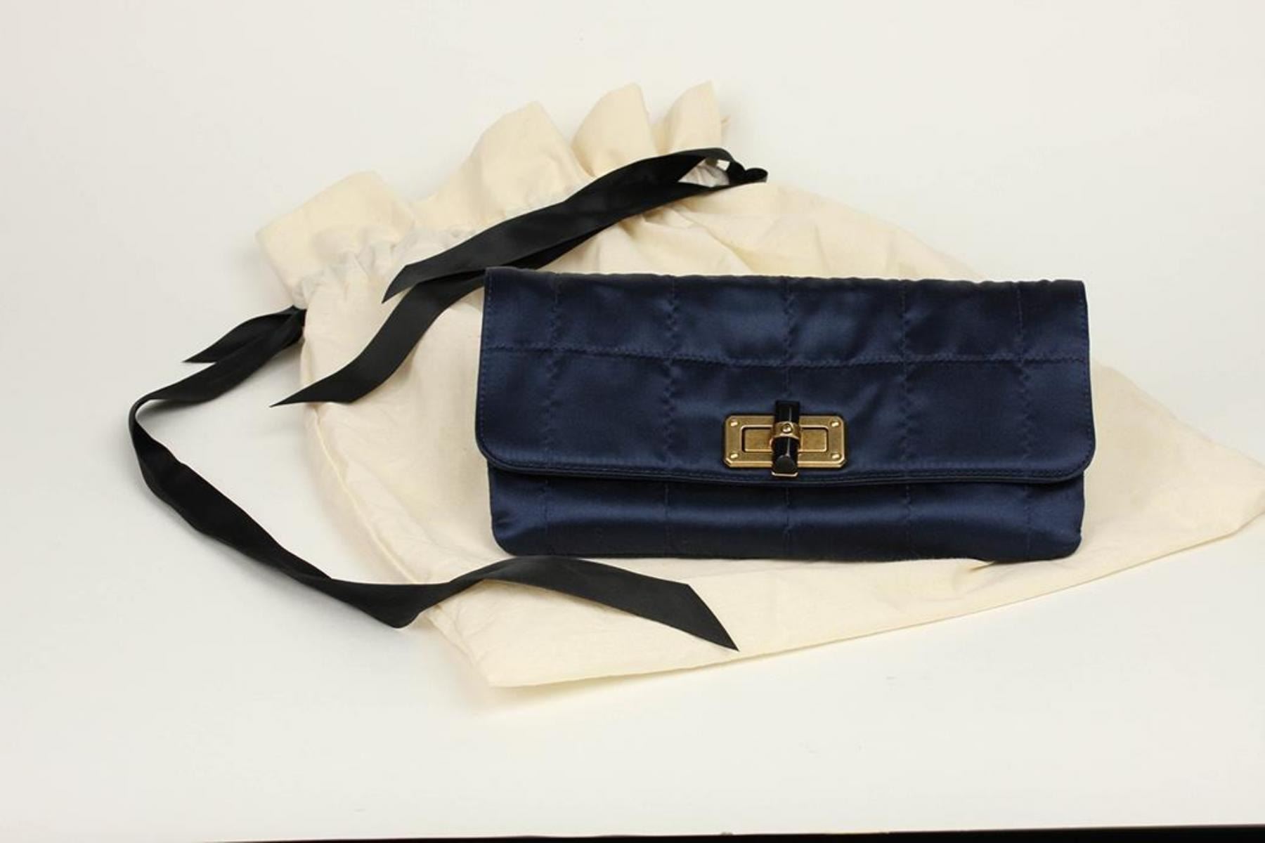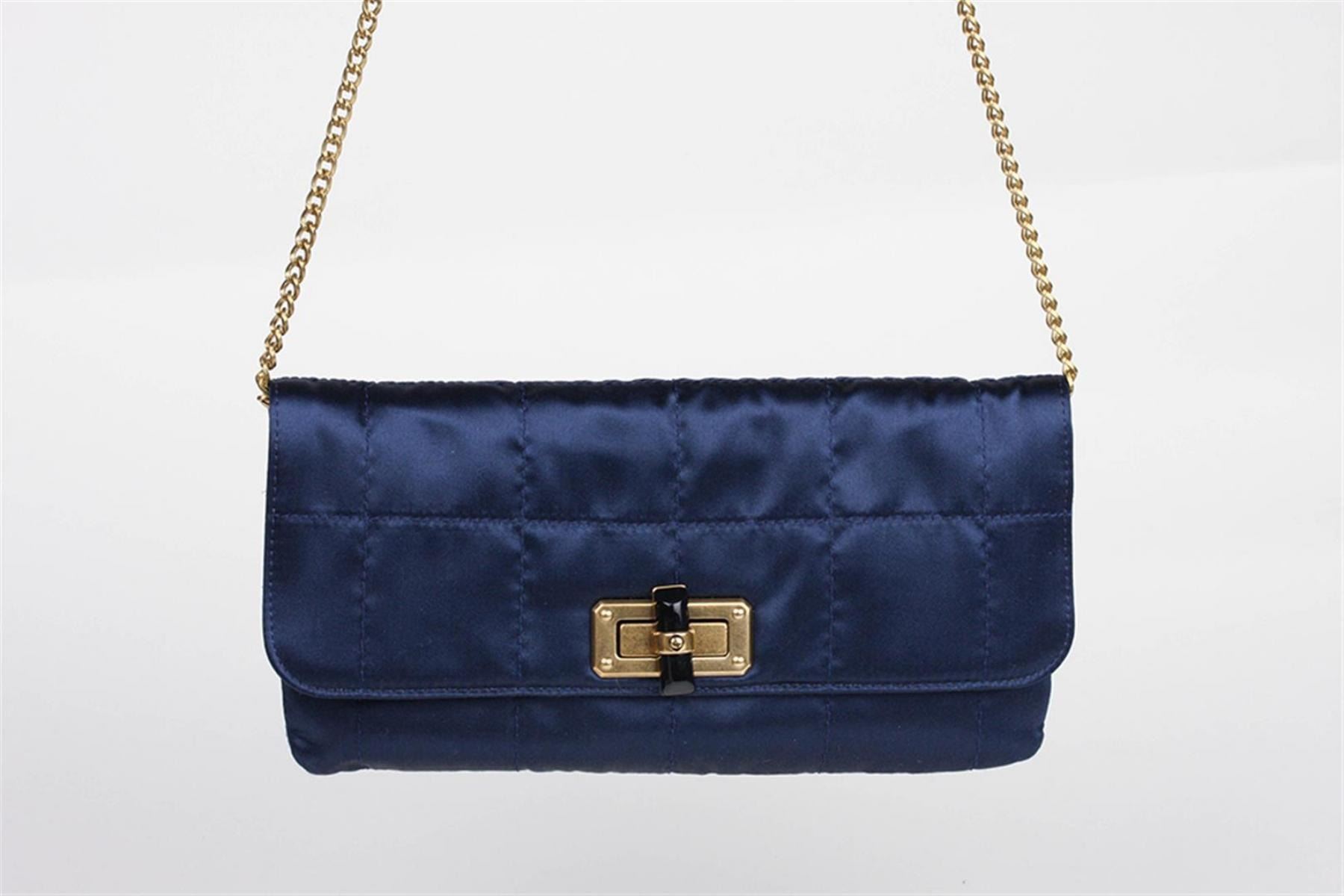 New lanvin "happy Popla" satin evening bag/clutch featuring: stitched quilted marine blue satin. Converts from shoulder to clutch. Comes with original dust bag. Retails for $990.00. Valued between $1,000 an $1,100. Measures 10" x 5".