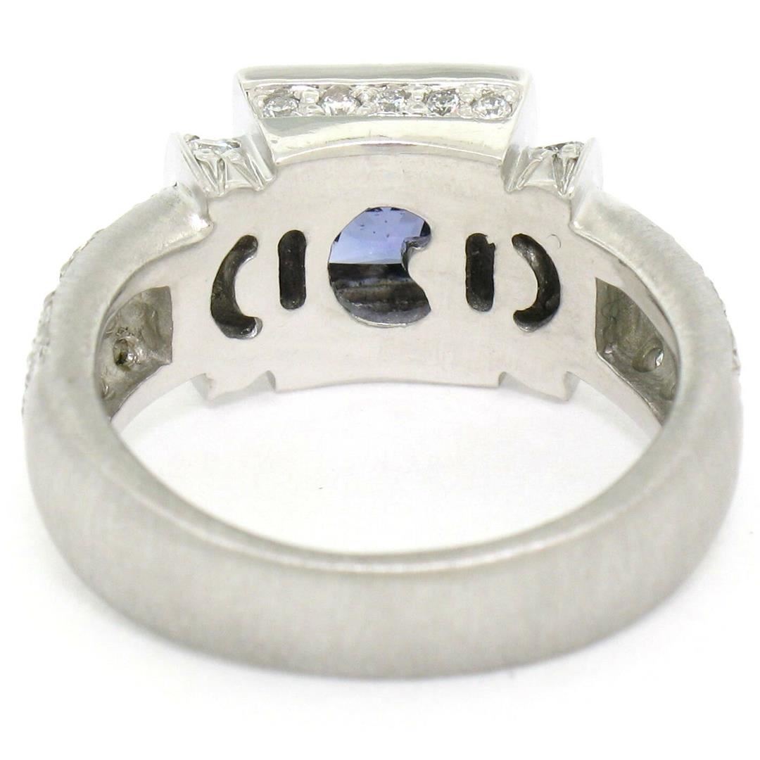A new solid .950 platinum ring featuring a 1.15ct princess cut tanzanite accented by 1.22ctw of round brilliant diamonds (F/G - VS1). The ring is size 6.0, weighs a total of 12.17 grams, and measures 9.25mm wide.