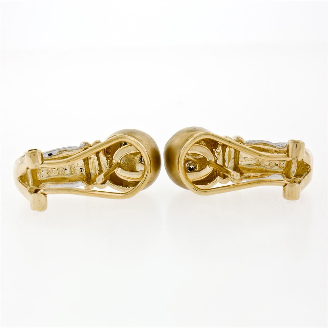 New Unique 14K TT Gold .20 ctw Round Diamond Textured Brushed Omega Back Earring