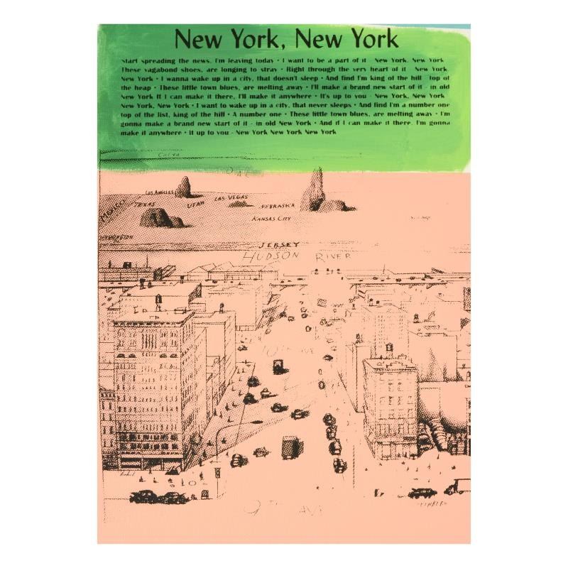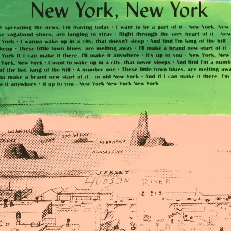 "New York, New York" is a one-of-a-kind hand-pulled silkscreen and mixed media painting on canvas by Ringo (Daniel Funes) - protege of Andy Warhol's apprentice, Steve Kaufman. This piece is hand signed by the artist and Includes Certificate of Authenticity. This piece comes from the Andy Warhol Legacy Series. Measures approx. 14" x 16" (image). ** Please note: the signature for this piece is located within the right border and will be outside the display image when framed; see photo for reference. **