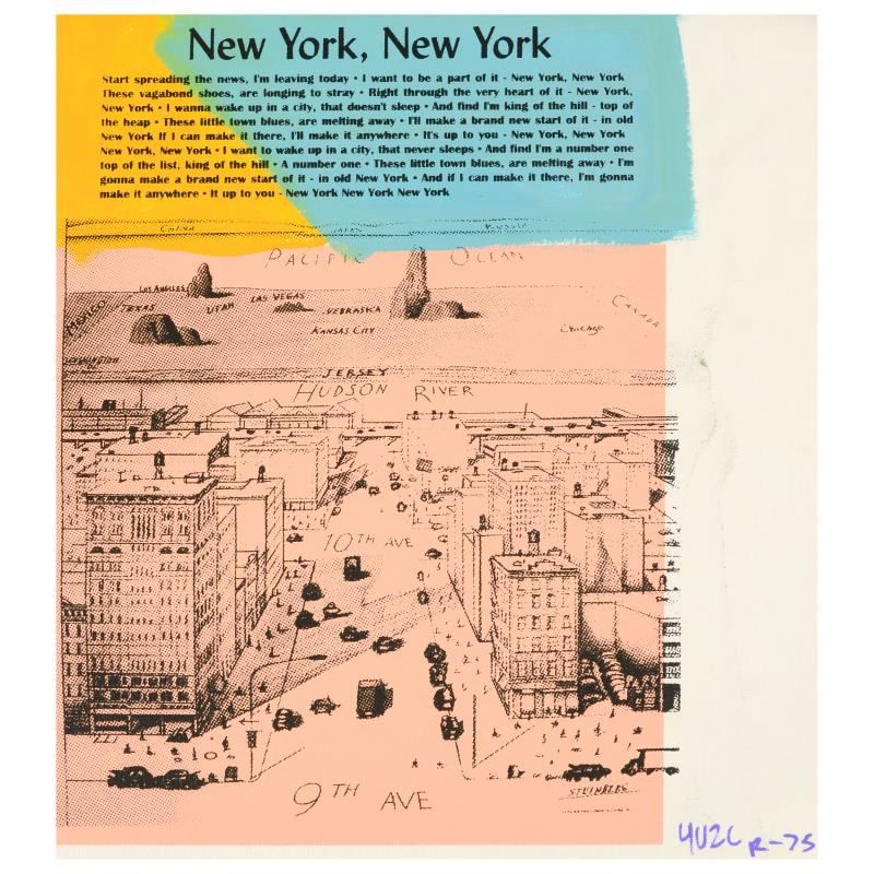 "New York, New York" is a one-of-a-kind hand-pulled silkscreen and mixed media painting on canvas by Ringo (Daniel Funes) - protege of Andy Warhol's apprentice, Steve Kaufman. This piece is hand signed by the artist and Includes Certificate of Authenticity. This piece comes from the Andy Warhol Legacy Series. Measures approx. 14" x 16" (image). ** Please note: the signature for this piece is located within the right border and will be outside the display image when framed; see photo for reference. **