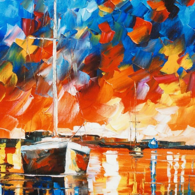 Leonid Afremov's (1955-2019) masterful use of color and texture make his paintings unique collectibles that are sure to brighten any wall. "Night Comes" is a limited edition giclee on canvas. The piece is numbered and bears the artist's authorized signature. This piece comes gallery wrapped. Includes Letter of Authenticity. Measures approx. 16" x 27.5" (image).