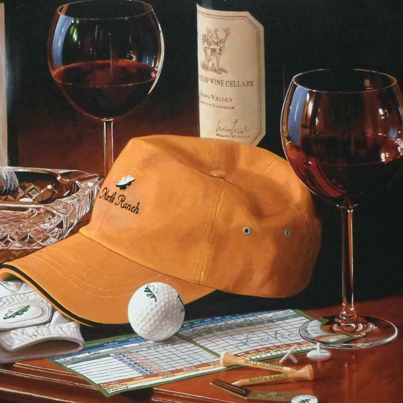 "North Ranch C. Club III" is a numbered limited edition giclee on canvas by Nobu Hairara. It comes bearing the artist's authorized signature and with a Certificate of Authenticity. Measures approximately 13"x16.5" (image).