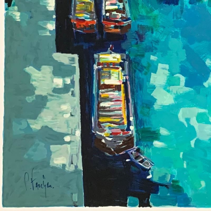 "Notre Dame" is a limited edition serigraph on paper by Claude Fauchere. It is numbered and hand signed and includes a letter of authenticity. Measures approximately 28.5" x 28.5" (image).