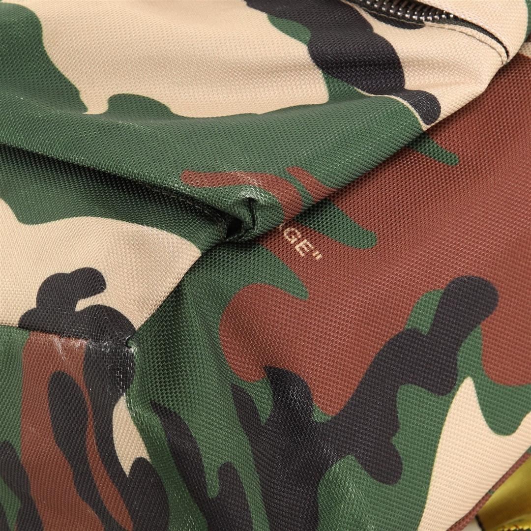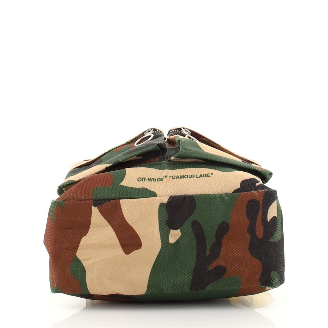 One Off White Double Front Pocket Backpack Printed Canvas. Item is sold AS-IS. All available information is listed in the description and shown in the photo. Off White Double Front Pocket Backpack Printed Canvas. Stain on front pocket, wear on exterior edges, straps and in interior. Discoloration on base and pocket corners, pilling in interior, scratches and tarnish on hardware. 78848