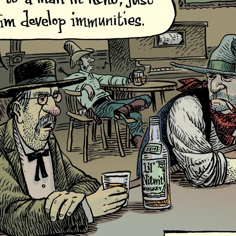 "Old West Doc" is a limited edition giclee on paper by Dan Piraro, creator of the critically acclaimed and award winning comic strip, Bizarro! This piece is numbered and hand signed by the artist and includes aletterof authenticity. Measures approximtely 8" x 15" (image).