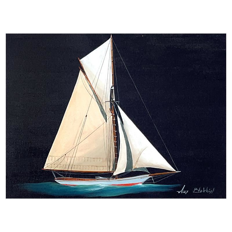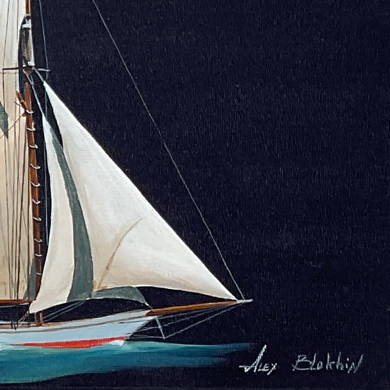 One Masted Yacht is an original painting on canvas by Alex Blokhin, hand signed by the artist. Includes Letter of Authenticity. Measures approx. 12 x 16 (image).