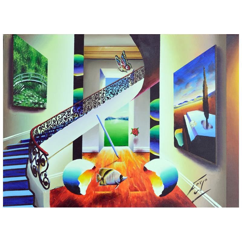 "One Step At A Time" is an original painting, oil on stretched canvas, by Ferjo. Hand signed by the artist, this piece comes with a letter of authenticity. Measures approx. 18" x 24" (image).