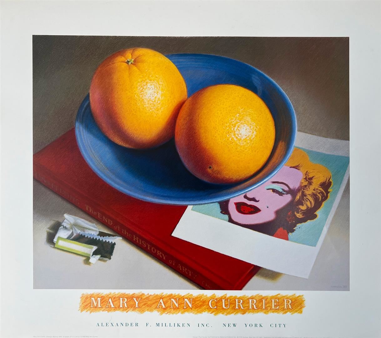 Oranges Warhol by Currier, Mary Ann. Open Unsigned Offset Lithograph. minor ding on image. Dimensions: 27 x 30.5. As Is.