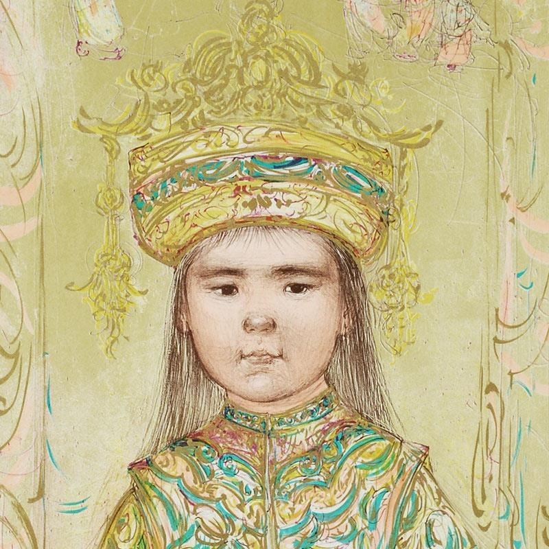 "Oriental Daydream" is a limited edition lithograph on paper, numbered and hand signed by Edna Hibel (1917-2014). Includes Certificate of Authenticity! Measures approx. 18" x 22" (with border), 13" x 16" (image).