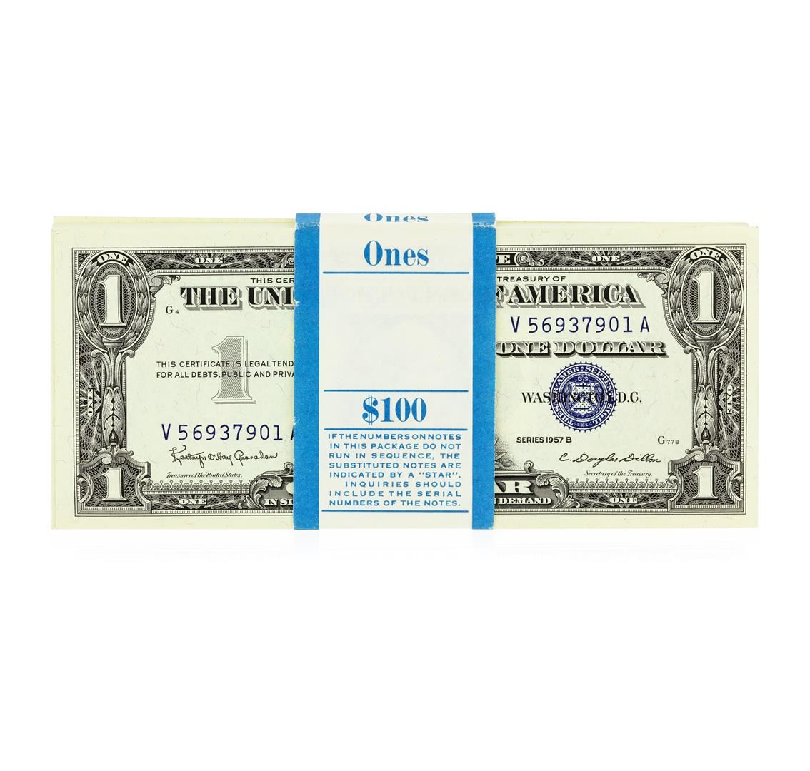 One Original 1957B $1 Silver Certificate Pack of 100.
