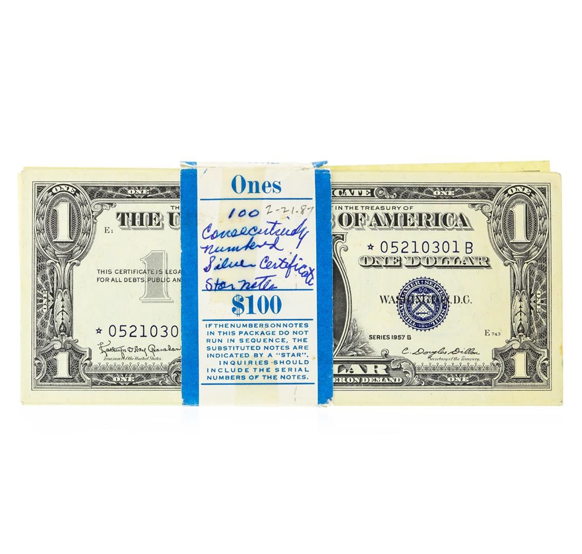 Original 1957B $1 Star Note Silver Certificate Pack of 100.