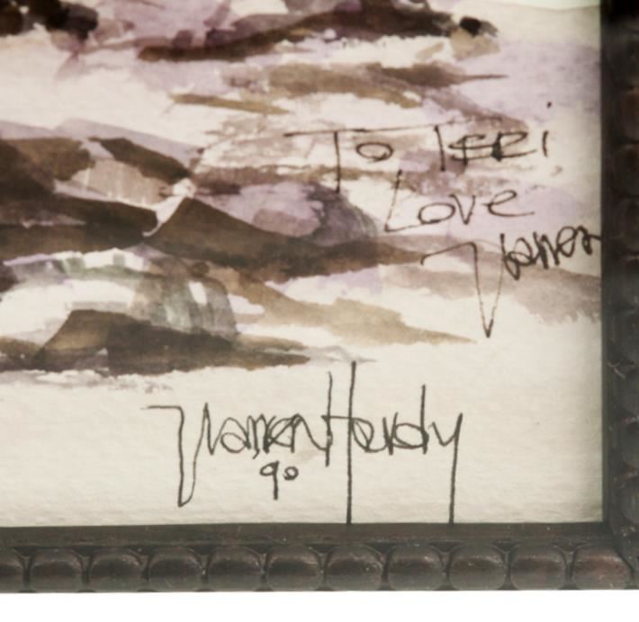 One painting featuring: Warren Hardy artist, signed and dedicated on lower right, mart measures 13.5" x 10" and framed it measures 25" x 21".