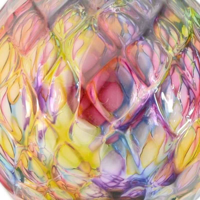 "Ornament (Rainbow Diamond Facet)" is a hand blown glass ornament (second) from Glass Eye Studios. This piece contains ash from the 1980 volcanic eruption of Mount St. Helens. As each piece is individually handcrafted, the pattern in the glass may vary slightly from the image shown. "Second" means very slightly imperfect, but still great quality. Measures approx. 3" x 3".