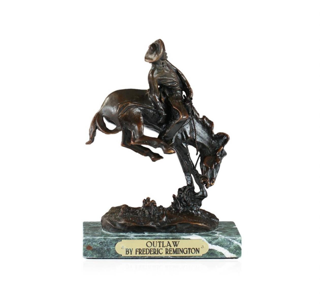 One "Outlaw" Bronze Replica By Frederic Remington. 8 Inches tall.