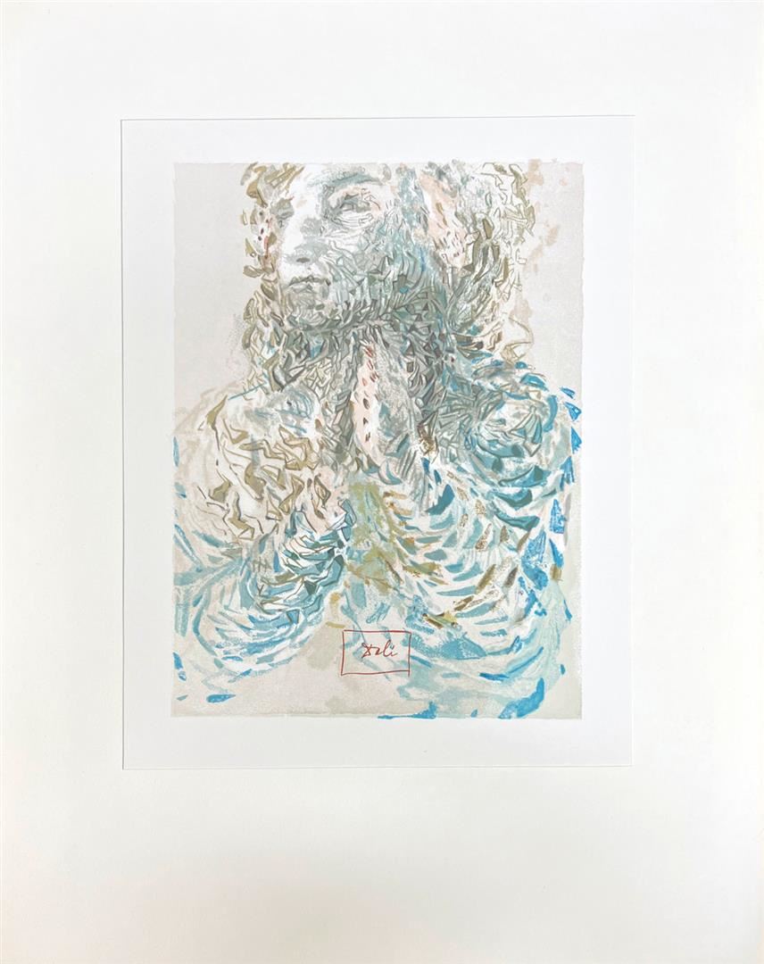 PARADISE 17 CACCIAGUIDA SEES DANTE'S EXILE IN GOD by Dali, Salvador. Open Block Signed Woodcut on Paper. Dimensions: 10 x 7. Excellent Condition.