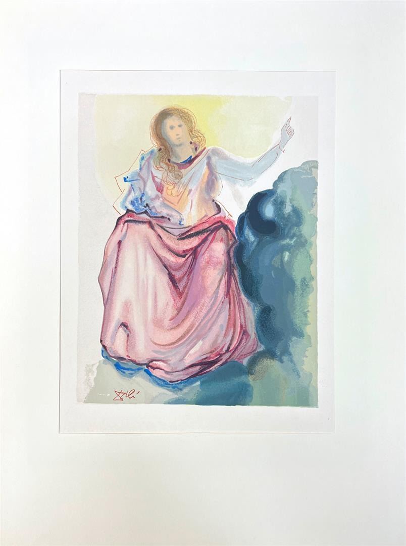 PARADISE 4 BEATRICE RESOLVES DANTE'S DOUBTS by Dali, Salvador. Open Block Signed Woodcut on Paper. Dimensions: 10 x 7. Excellent Condition.
